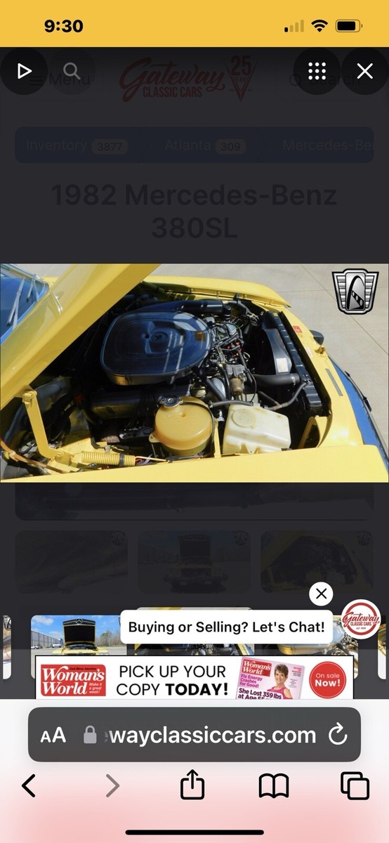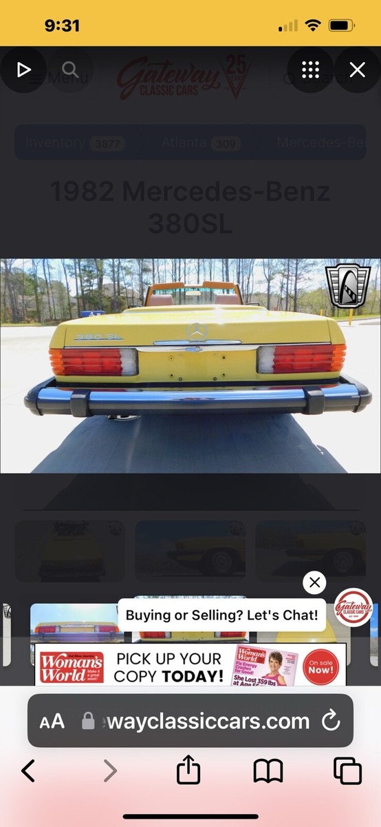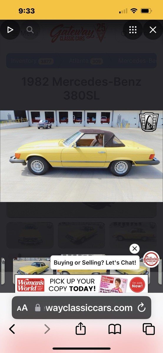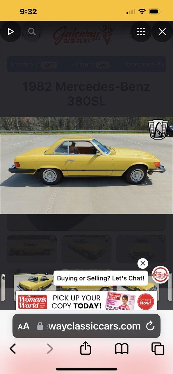 1982 Mercedes-Benz 380SL Convertible Yellow SL
