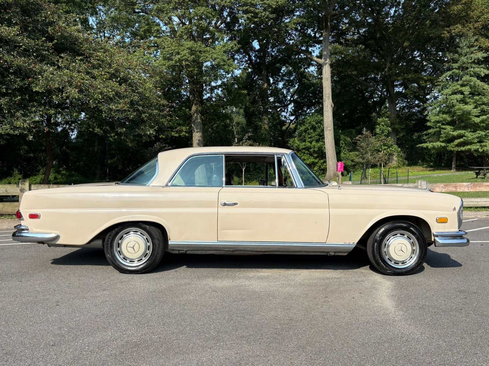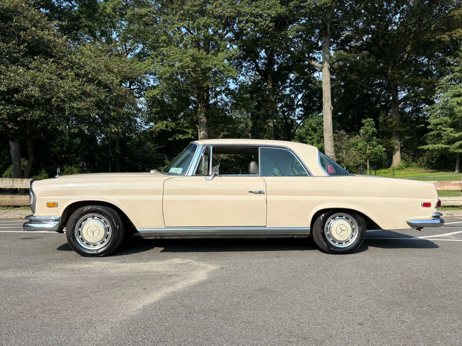 Up for sale is a beautifully preserved 1969 Mercedes-Benz 280SE Coupe with only 23,561 original miles. This rare W111 pillarless coupe was kept in storage from the 1980s until 2024 and still wears its original factory Light Beige (code 181) paint over a dark brown interior.