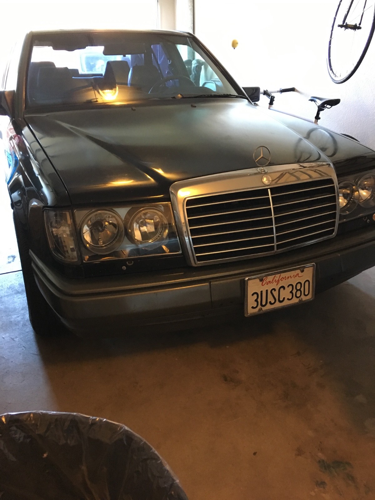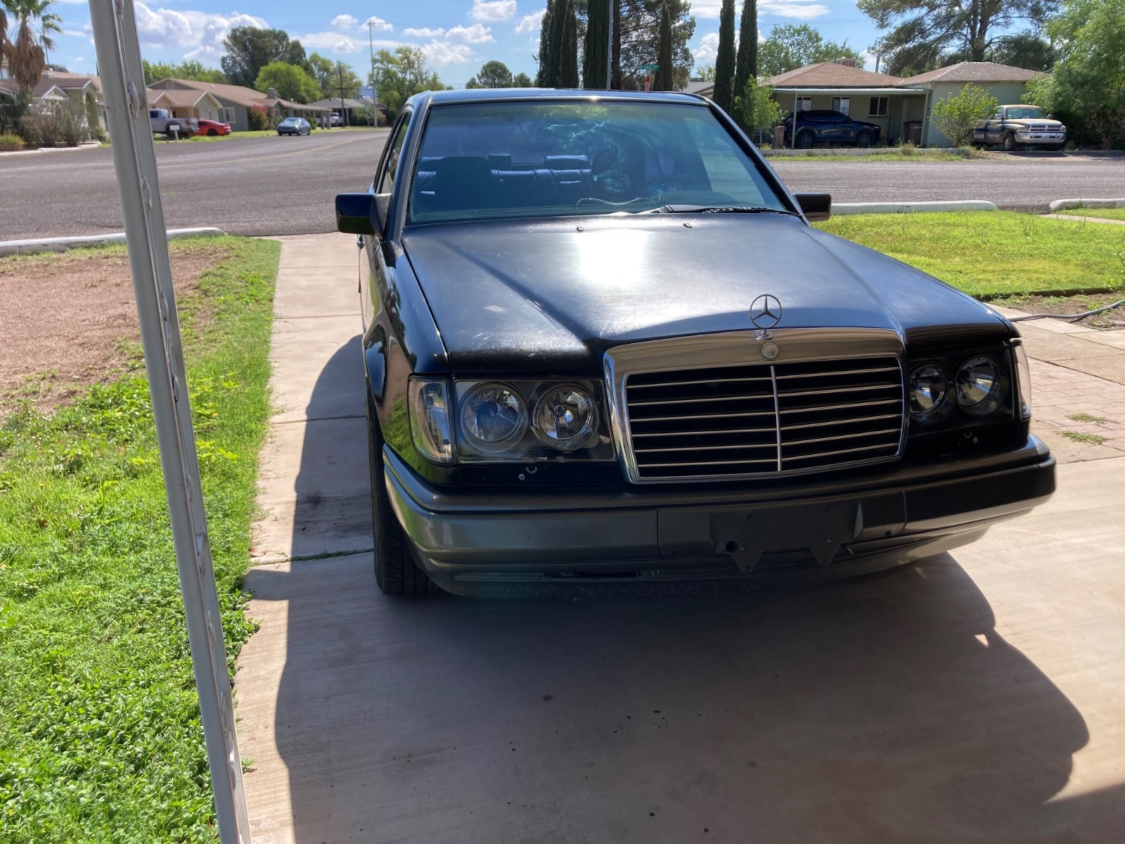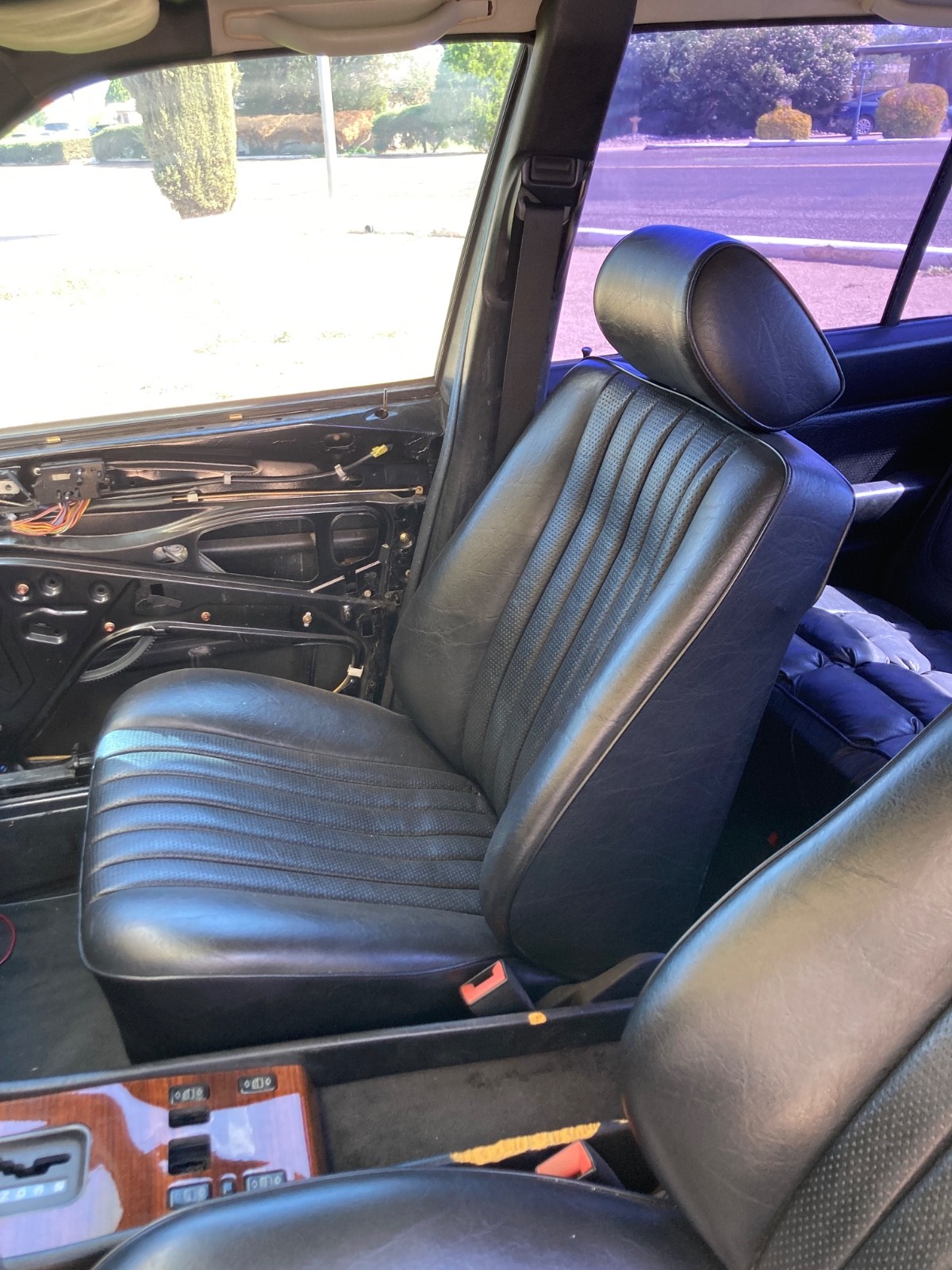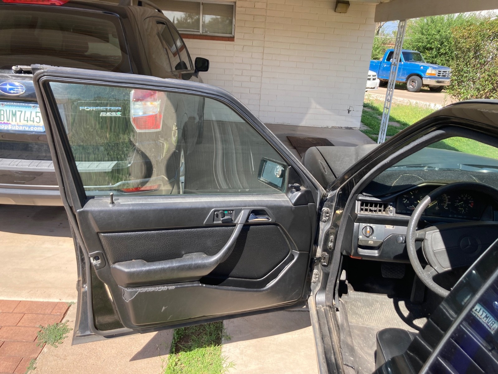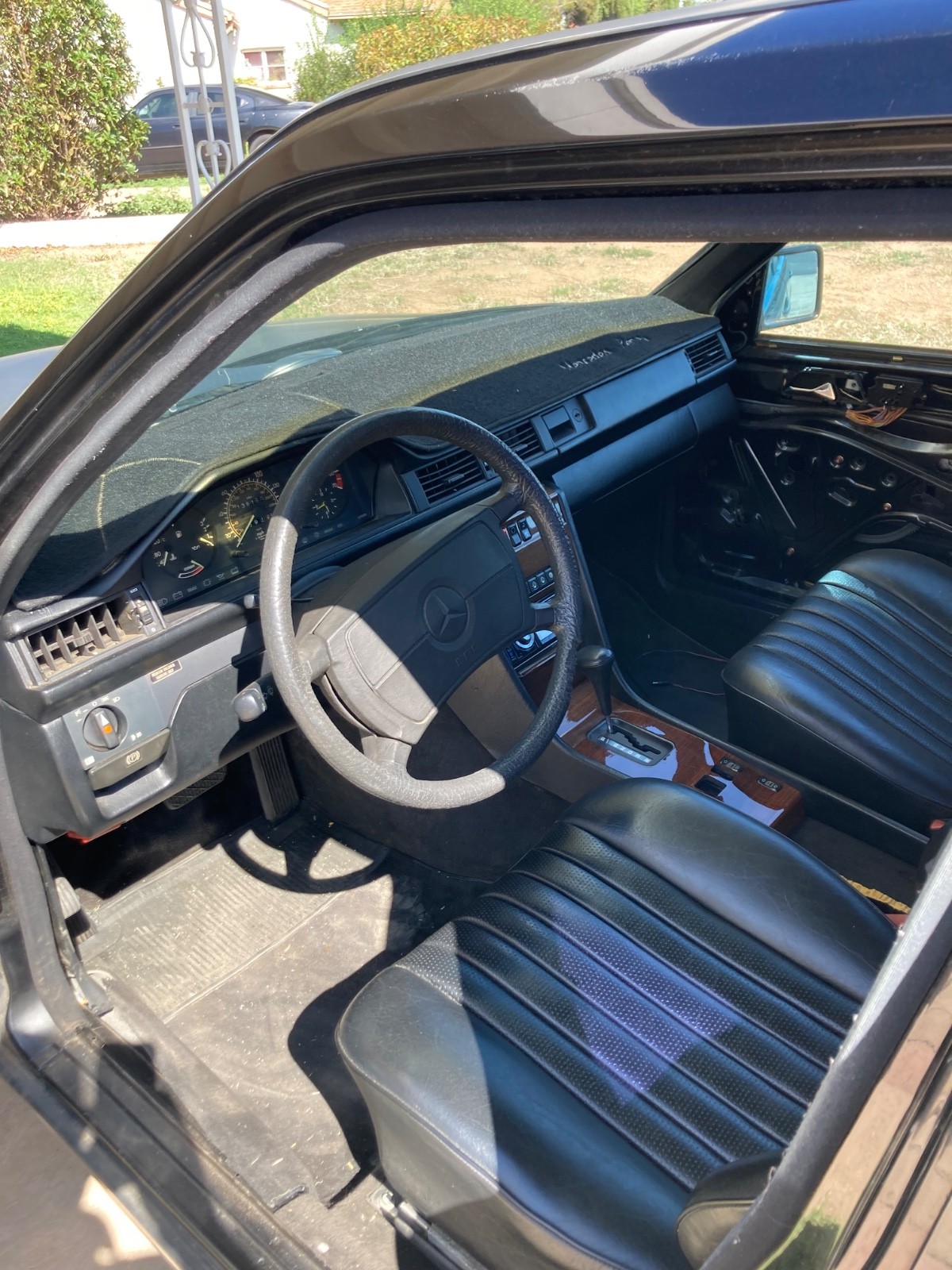 This is a 1986 300E in fairly good condition. Car obtained in California and now in AZ. It has an a somewhat impressive interior with a very nice wood dash and original leather in very good condition with mild wear and no scuffs or tears. Interior always used non-abrasive seat covers since new and has been kept garaged for most of its life. It should be considered a project vehicle with the inline 6-cylinder motor possibly needing some work, as it runs a bit rough. A newly rebuilt transmission was installed earlier this year, and purchased from Sun Valley Transmissions in Pacoima, CA for $2900 (Receipts available). Also, a new/rebuilt power steering pump installed this year. Passenger door panel is off as we attempted to replace the lock mechanism.