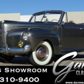Same Arizona for the past ten yearsOnly third model year for Mercury, which launched in 1939One of 8,556 Club Convertibles made in 1941239 CID Flathead V-8 engine with Edelbrock aluminum intake manifold and headersTriple Stromberg carburetorsThree-speed manual transmission and 3.54 gearingMayfair Maroon exterior with red/white interior and tan, canvas folding topJust two years after its debut, Mercury was doing its job as the bridge between the entry-level Ford and the upper crust Lincoln-Zephyr. Triple Stromberg carburetors replace the factory Holley dual downdraft unit on the Ford Flathead V-8 engine. This highly desirable Mercury convertible comes from Scottsdale Arizona and owned by the same owner for the past ten years.