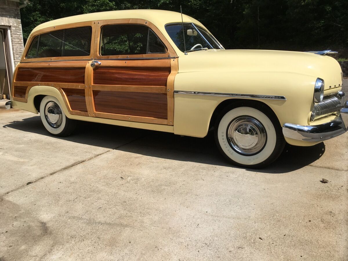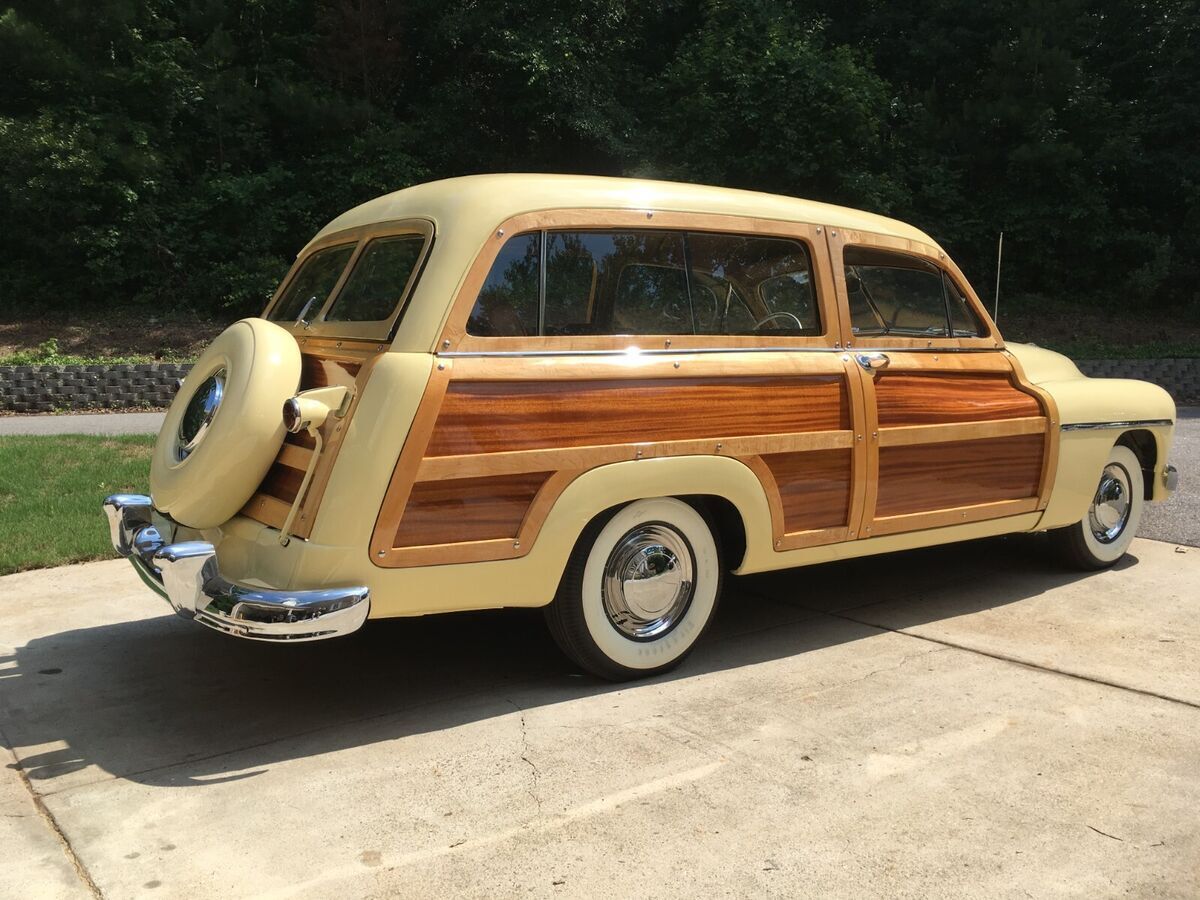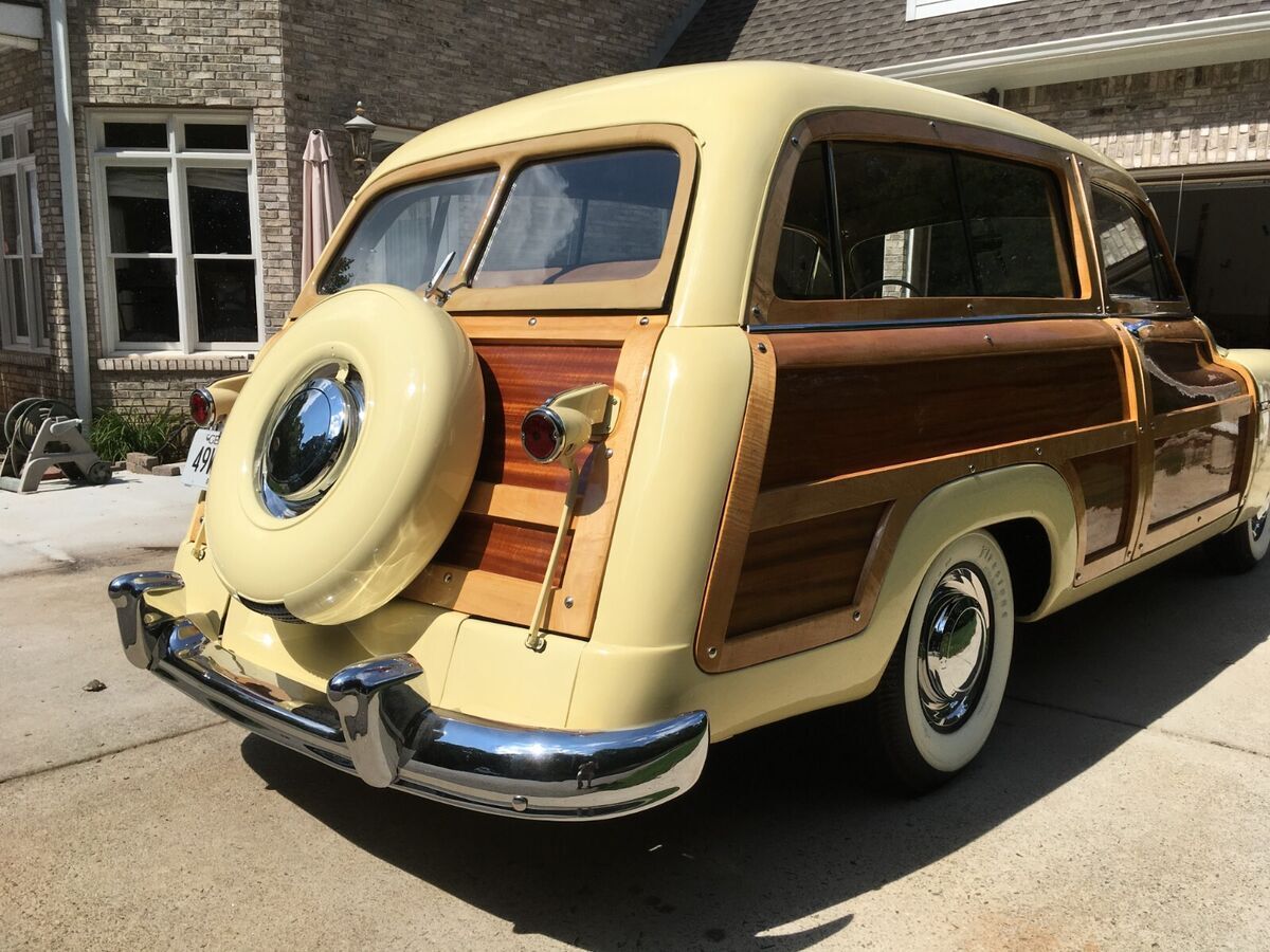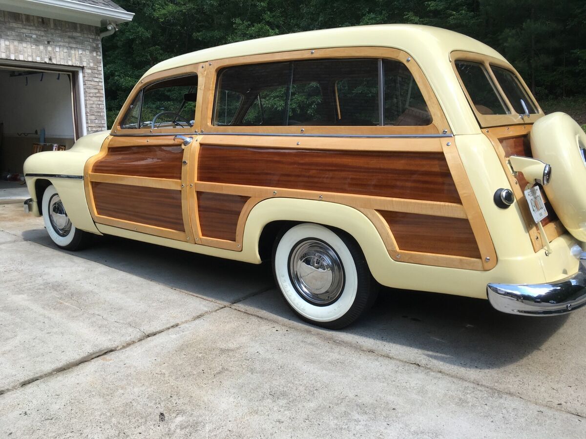 This 1949 Mercury Eight woodie wagon underwent a complete, ground up refurbishment from 2015 to 2023 that included replacement of the wood framework and doors as well as media blasting and paint for all metal surfaces. a Mercury 255CI V8 paired with a three-speed column-shifted manual transmission with overdrive, the wagon is fitted with three rows of bench seats trimmed in tan leather upholstery as well as a new, correct pattern headliner, front vent windows, original wheels with chrome hubcaps and beauty rings, and a rear spare-tire carrier. Glass is all new. Has a stainless steel exhaust system. This woodie wagon is now offered with a clean registration with no liens or encumbrances in the seller’s name.All wood framing and doors were replaced during a refurbishment that occurred in 2019. At that time, the body, front and rear fenders as well as the hood were repainted in their correct shade of Calabash Yellow. Equipment includes correct pattern wood painted dash and trim, and a tailgate-mounted spare tire and cover in addition to chrome bumpers and side moldings.Steel 15″ wheels are finished in matching black with chrome hubcaps and beauty rings and are wrapped in Firestone 6.00-15″ whitewall tires. The brake master cylinder is new as are all brake lines, and new wheel cylinders and brake shoes were fitted in January 2020.Three rows of re-sprung bench seating are upholstered in tan leather/vinyl just like original and complemented by rubber floor coverings and wood door panels. Equipment includes front vent windows, an under-dash heater, an original, rebuilt turn-signal switch stalk, and sun visors. The AM radio does not work.The two-spoke steering wheel features a horn-ring and frames factory instrumentation consisting of a 100-mph speedometer and auxiliary gauges. All gauges work. The five-digit odometer shows 47k miles, approximately 150 of which were added by the seller since complete rebuild. True mileage is unknown.The Mercury 255CI engine and transmission were completely rebuilt. Power is sent to the rear wheels through a column-shifted three-speed manual transmission with overdrive.The chassis number indicated on the title—9CM-58267—is located on the passenger side frame rail near the engine. Engine cold startup:https://youtu.be/jh7iVRHg-5I