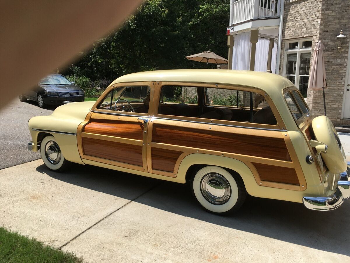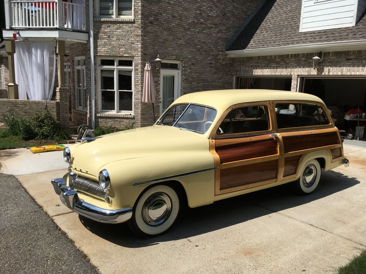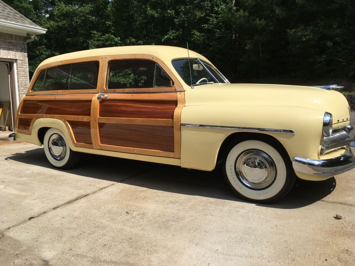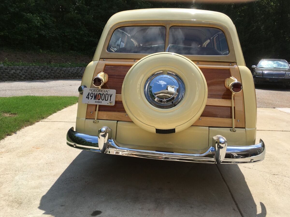 This 1949 Mercury Eight woodie wagon underwent a complete, ground up refurbishment from 2015 to 2023 that included replacement of the wood framework and doors as well as media blasting and paint for all metal surfaces. a Mercury 255CI V8 paired with a three-speed column-shifted manual transmission with overdrive, the wagon is fitted with three rows of bench seats trimmed in tan leather upholstery as well as a new, correct pattern headliner, front vent windows, original wheels with chrome hubcaps and beauty rings, and a rear spare-tire carrier. Glass is all new. Has a stainless steel exhaust system. This woodie wagon is now offered with a clean registration with no liens or encumbrances in the seller’s name.All wood framing and doors were replaced during a refurbishment that occurred in 2019. At that time, the body, front and rear fenders as well as the hood were repainted in their correct shade of Calabash Yellow. Equipment includes correct pattern wood painted dash and trim, and a tailgate-mounted spare tire and cover in addition to chrome bumpers and side moldings.Steel 15″ wheels are finished in matching black with chrome hubcaps and beauty rings and are wrapped in Firestone 6.00-15″ whitewall tires. The brake master cylinder is new as are all brake lines, and new wheel cylinders and brake shoes were fitted in January 2020.Three rows of re-sprung bench seating are upholstered in tan leather/vinyl just like original and complemented by rubber floor coverings and wood door panels. Equipment includes front vent windows, an under-dash heater, an original, rebuilt turn-signal switch stalk, and sun visors. The AM radio does not work.The two-spoke steering wheel features a horn-ring and frames factory instrumentation consisting of a 100-mph speedometer and auxiliary gauges. All gauges work. The five-digit odometer shows 47k miles, approximately 150 of which were added by the seller since complete rebuild. True mileage is unknown.The Mercury 255CI engine and transmission were completely rebuilt. Power is sent to the rear wheels through a column-shifted three-speed manual transmission with overdrive.The chassis number indicated on the title—9CM-58267—is located on the passenger side frame rail near the engine. Engine cold startup:https://youtu.be/jh7iVRHg-5I