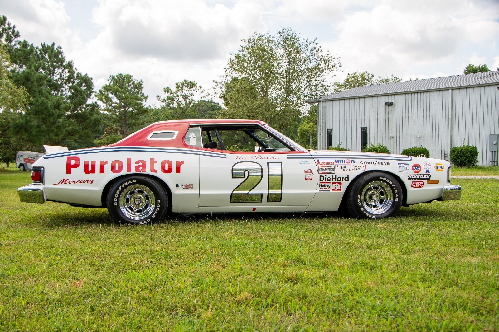 1976 Purolator Mercury – Rare David Pearson Tribute Car Own a true piece of NASCAR history. This 1976 Purolator Mercury is one of only two known to exist and is an exact tribute to David Pearson’s iconic #21 car—the first vehicle to win NASCAR’s prestigious “Triple Crown” in the same year. This car is personally signed by David Pearson himself, along with other NASCAR legends. Even more impressively, Pearson drove this very car for 10 laps at the historic Darlington Raceway. Expertly built by Freddy Brookshire (long time friend of the silver fox) of Brookshire Motorsports, this car is a show-stopping combination of authenticity and craftsmanship. It comes with an incredible collection of rare, hard-to-find ("unobtainium") NASCAR memorabilia, making it a dream package for collectors. The car runs and drives beautifully powered by a 460 with internal parts from Holman and Moody and includes power windows and other creature comforts—bringing together classic racecar flair with modern-day usability.