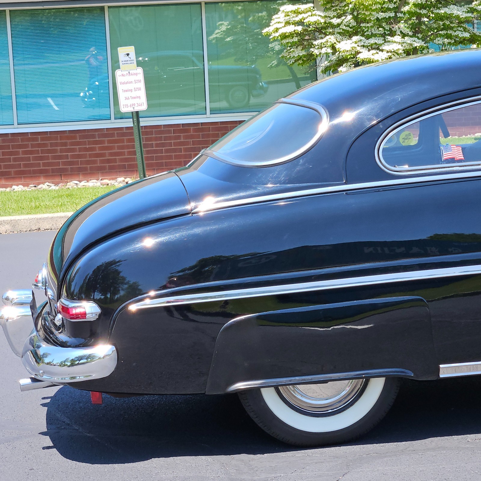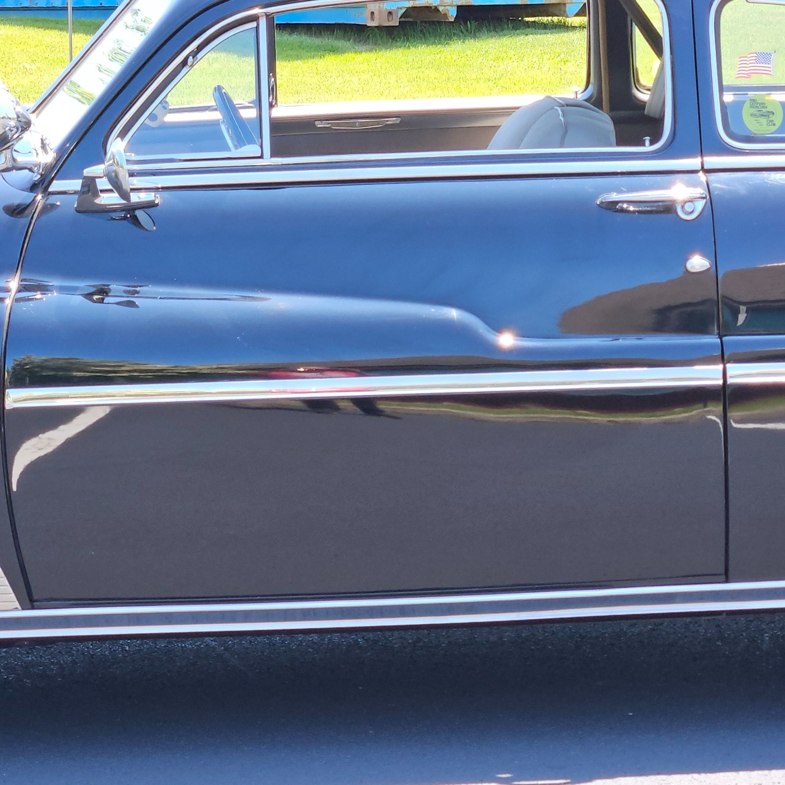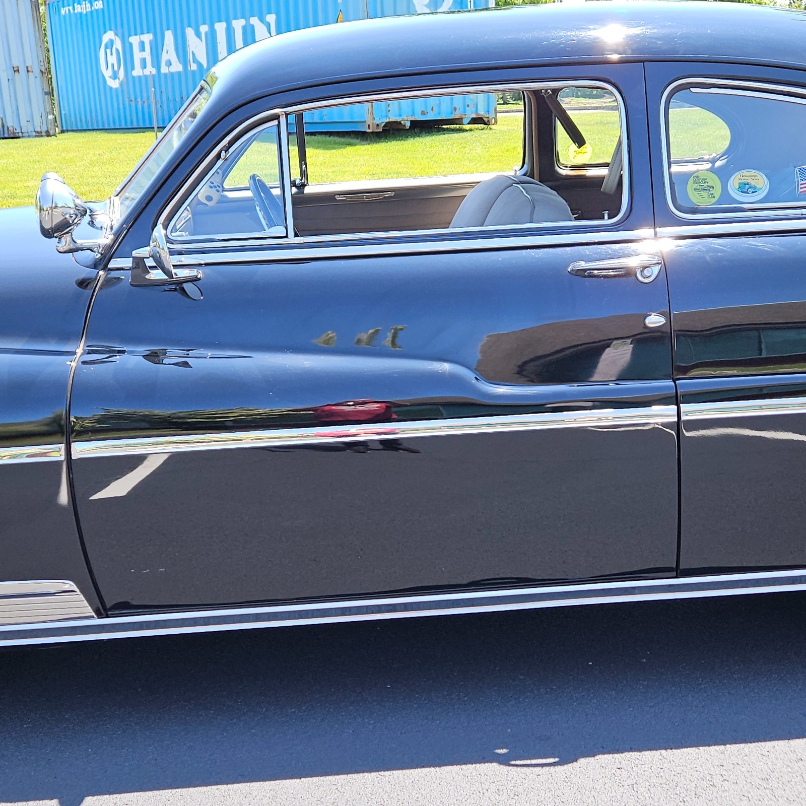 Glossy black clear coat paintfrom a prior restoration that still shines like a show car