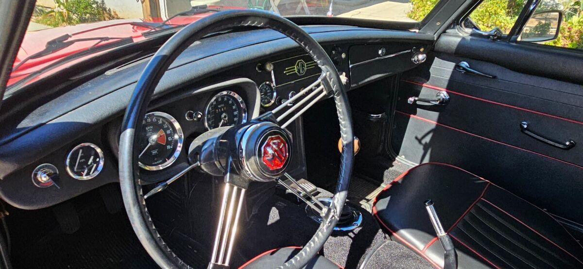 Helping my dad sell his 1967 MGB GT. He has owned it for approximately 26 years. We did a cosmetic restoration on it 25 years ago. It has been garaged ever since.Some of the work done back then incudes:Full respray in original red, new upholstery in black leather with red piping, carpet replaced, 5 new center lock mini lite type wheels including spare (15"). Grill was replaced and lots of trim too. Leather wrapped original style steering wheel. Suspension rebuilt.Over the years many improvements have been made:MOSS MOTORS Supercharger with boost gauge.Early 3 synchro overdrive transmission.Remote brake boosterExtended distance fuel tank.New bottom end bearings less than 1000 miles agoAluminum radiator, new cooler and hoses, recent new water pump.New steering rackHigh Torque starterElectronic ignitionTires were replaced in 2023 with proper Michelin XZX 165SR15The only rust is the lower drivers side fender down at the bottom has developed several rust bubbles (see pics).Front and rear window trim was never reinstalled but is included.Lots of under carriage pictures.Very solid California car its whole life. Runs excellent. Not a show car but a proper respectable driver that still shines!If you wish to see the car please do so before bidding. I am available 7 days a week as I work at home. Please ask any questions you may have, I usually will get back to you within a couple hours at most.Car is sold AS-IS with NO warranty given or implied.Buyer is to pay for car in full before release of title or vehicle. Cash preferred or certified bank transfer if out of state. $500 deposit required.Buyer is responsible for all transportation of vehicle and the costs. I am here to assist in any way and have had many carriers pick up cars here before.