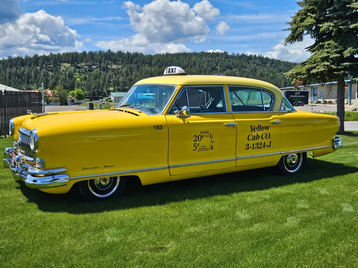 1953 NASH Taxi Cab.Step back in time with the 1953 Nash Ambassador Taxi, a quintessential piece of automotive history. Much rarer than the commonly found Checker. Painted in a striking yellow, this collector's car boasts a classic tan interior, evoking the sophistication of a bygone era. With a sedan body type, it comfortably seats six, making it an ideal choice for both spirited drives and leisurely cruises. The Ambassador model, known for its timeless design, rolls on a clear title, ensuring its authenticity and peace of mind for its new owner. With a modest mileage of 13,890 (showing), this piece of Nash legacy is a treasure for both enthusiasts and collectors alike, ready to add a touch of nostalgia to any collection. Original motor and automatic transmission. Comes with taxi meter and drivers cap. Chrome is excellent with optional "stacked" bumpers and bumperettes front and rear. "Taxi" light is remote controlled and magnet mounted. No holes in the roof. It is removable. The Nash Ambassador was well know as a durable automobile. If you watch any old B & W TV you will commonly see this car as a taxi or police car. Considering the exceptional condition of this car I doubt it was ever used as a taxi. However, it is a faithful tribute to this American icon. It needs a few things done to bring it back to it's original glory. The brakes work great but need adjusting, There is a deep chip on the passenger fender. The hood is missing a spring. UPDATE: I just now realized this car has the optional twin bed. A very rare and cool option. See the picture!This could be a great addition to any automotive museum, nostalgic limo fleet or possibly the greatest UBER spoof ever!There is more to say so do not hesitate to call. Located in Kalispell, MT 59901. Bob 727-642-8237