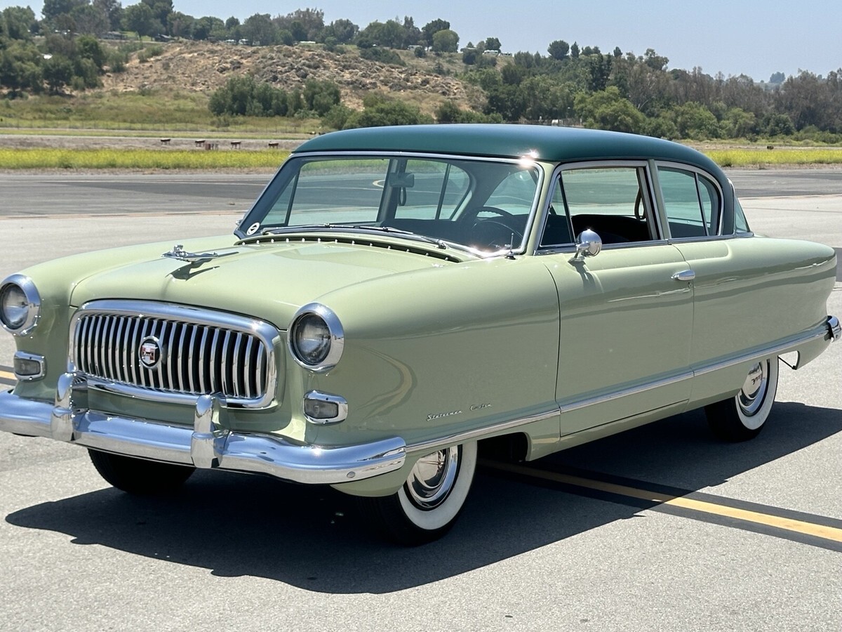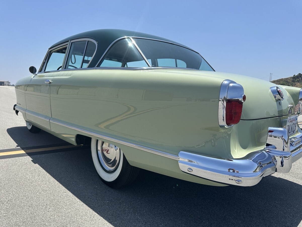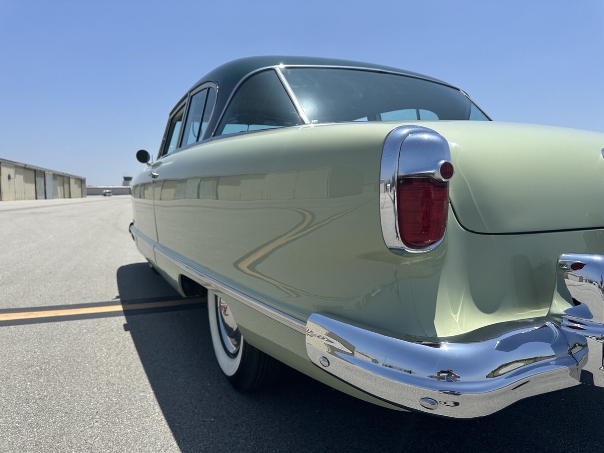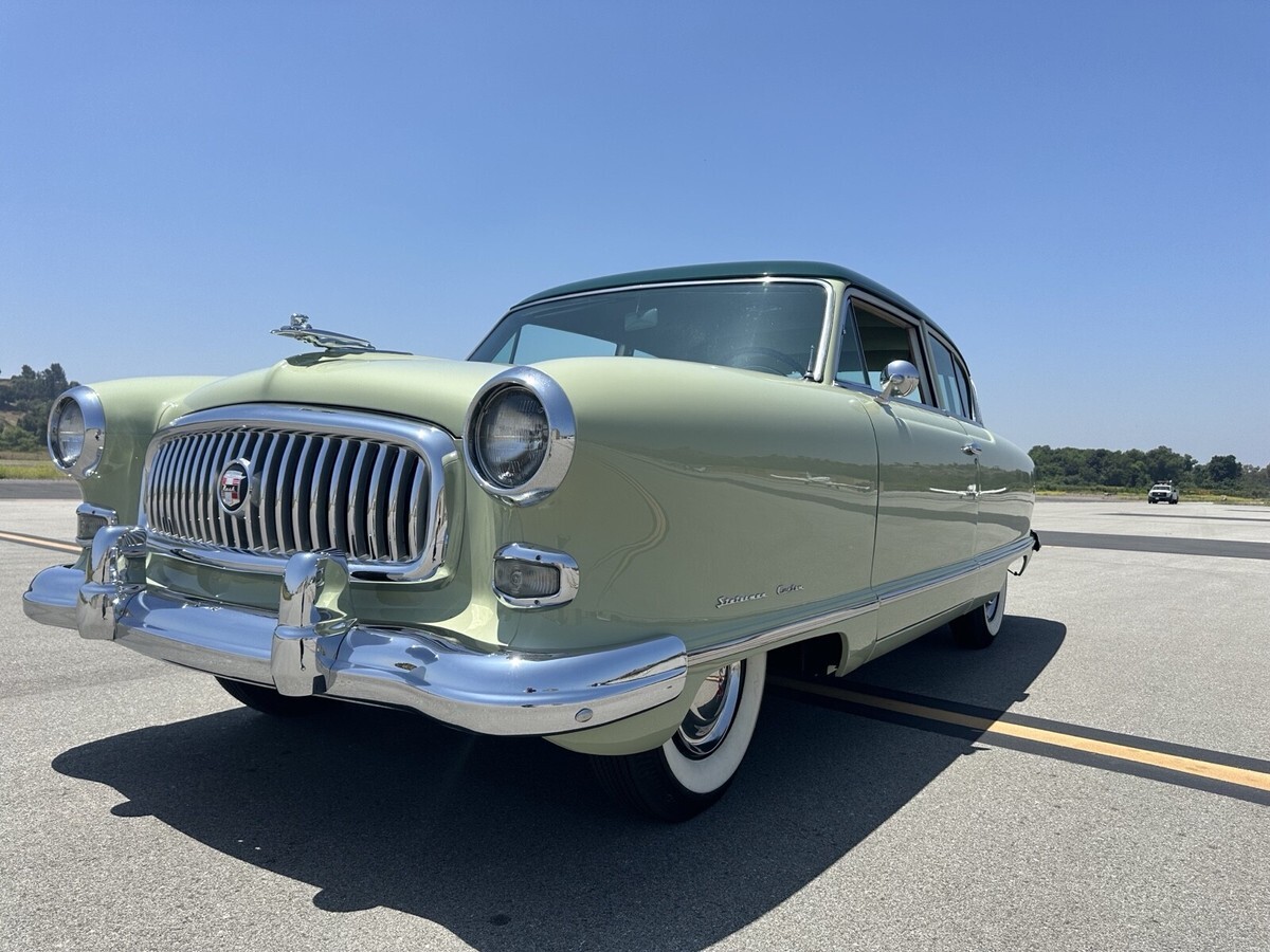 This is a 1953 Nash Statesman Custom in the rare 2 door model. This car runs and drives excellent. Newer Firestone whitewall tires. Has had all fluids serviced and we installed a new water pump about a year ago. This Statesman gets driven locally on weekends and has been stored indoors most of its life. There is no rust or rust repairs evident. This is a very dry Nash which if you know the brand they tend to rust. Chrome and bright work shines with some pitting starting but shows very nicely. Car was painted once with a high quality paint job the original colors. Interior is original and immaculate. Glass is in fantastic condition. Car is a wonderful driver and shower. Original 173 L head engine with 3 speed manual on the column. Car runs cool and drives, steers, brakes properly and can be driven immediately with confidence. 2 door Nash vehicles of this era are extremely rare and the whole Pininfarina bumper car look sets this apart from your average 53 anything. Always a crowd pleaser. A beautiful honest car. Message with any questions. Sold as is where is.