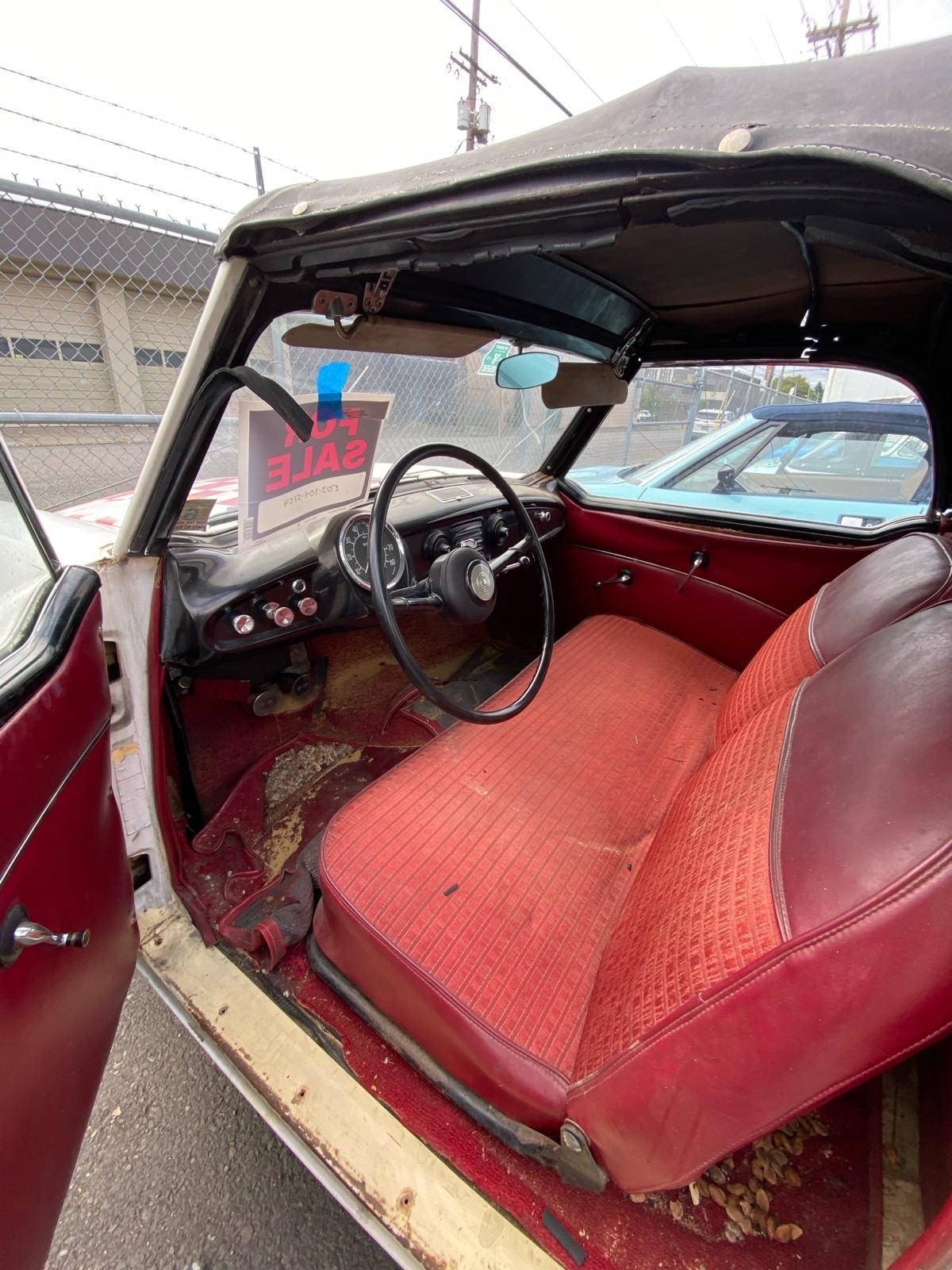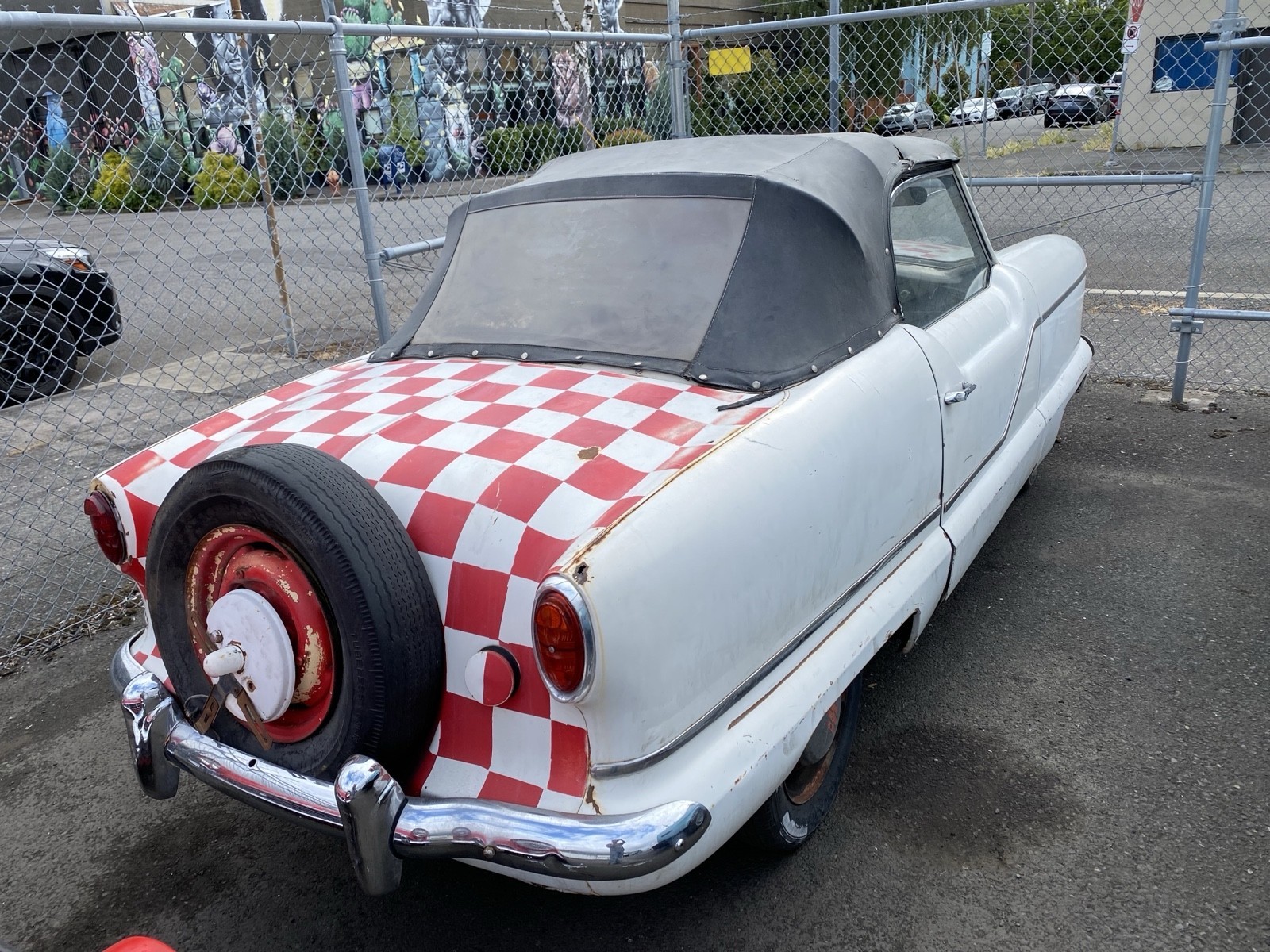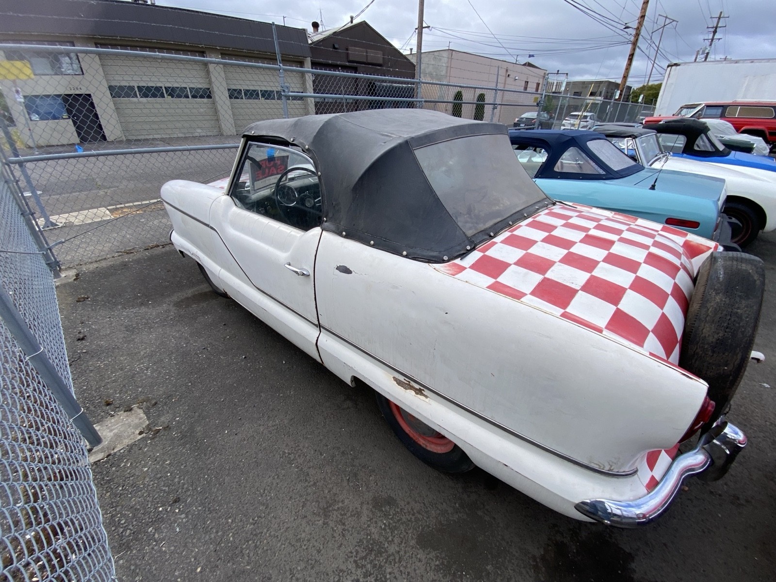 This 1958 Nash Metropolitan is a project vehicle that has been owned by the owner for about 10 years. The vehicle is in white color with red checkered painting and has a mileage of 26779. It is not running and needs work. Despite its current state, the owner has a clear title for the vehicle, making it ideal for those looking to restore or repair a classic car.