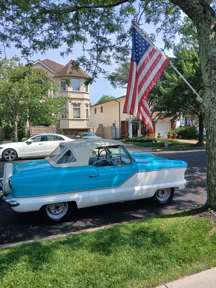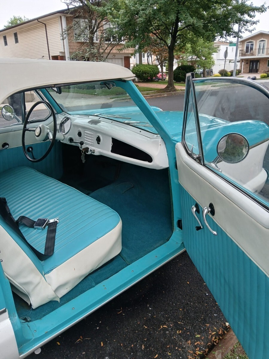 This car turns heads everyway you go...Up for sale 1958 Nash with the two-tone color beautiful looking car! Title says convertible,it was change from coupe to convertible; it was requiring a special additional NY inspection before the DMV changed the Title to convertible!Shine body paint with a nice interior and solid undercarriage, speedometer it shows 08615 they may not be original, but I can only post what the speedometer shows. The convertible frame one bar broke into the left side needs to by welder however it still folds up and down. Car runs and drives great the engine it has low miles runs smooth the transmission shifts smooth, it was update with the Weber carburetor also was update to the alternator, recently replaced tires and brakes also the grille molding and bumbers are new. My ask price it supposed to be $20k but I need to let go. Please let me know if you want to pick up in person and drive Home, you can drive up to 70 mph a Cross a Country no overheating.