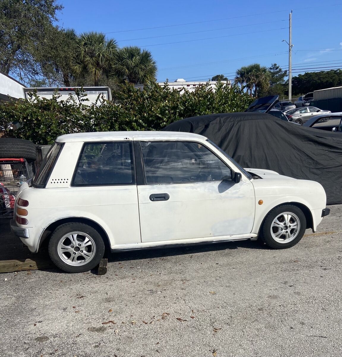 Right hand drive Clean Florida title! No reserve 1987 Nissan 2 Door White Notchback car. The Nissan Be-1 is a retro-styled two-door notchback sedan manufactured by Nissan for model years 1987-1988, and originally marketed solely in Japan at their Nissan Cherry Stores. The one we are selling is an automatic with AC bought as a father/son project. We got the car running but have not driven it. We took the best pictures we could to show what rust it has. The photos shows the car on the lift. No reserve auction. Bought as is! Thank you!!
