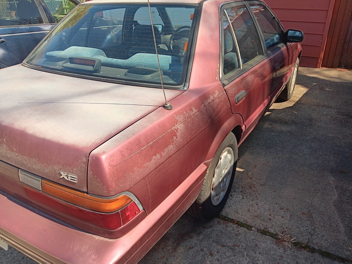 This 1991 Nissan stanza is a classic car that is perfect for any collector or enthusiast. With its burgundy exterior and gray interior, this sedan is a beauty to behold. and is ready for its next owner. The stanza has a 2.4L engine with 4 cylinders and an automatic transmission, It also features power windows, air conditioning, power locks, and power steering. This car is a 2WD and has a mileage of 244xxx. It has had only one previous owner and has not been registered overseas. However vehicle does need to be restored. Has maintenance issues. Brakes worn, shocks,axles,speedometer not Working,tires worn,drivers window only one Working. Battery needs to be replaced. Paint and body work. Dings dets minor rust spots.Interior is decent. Vehicle has no warranties Sold as is. No returns.