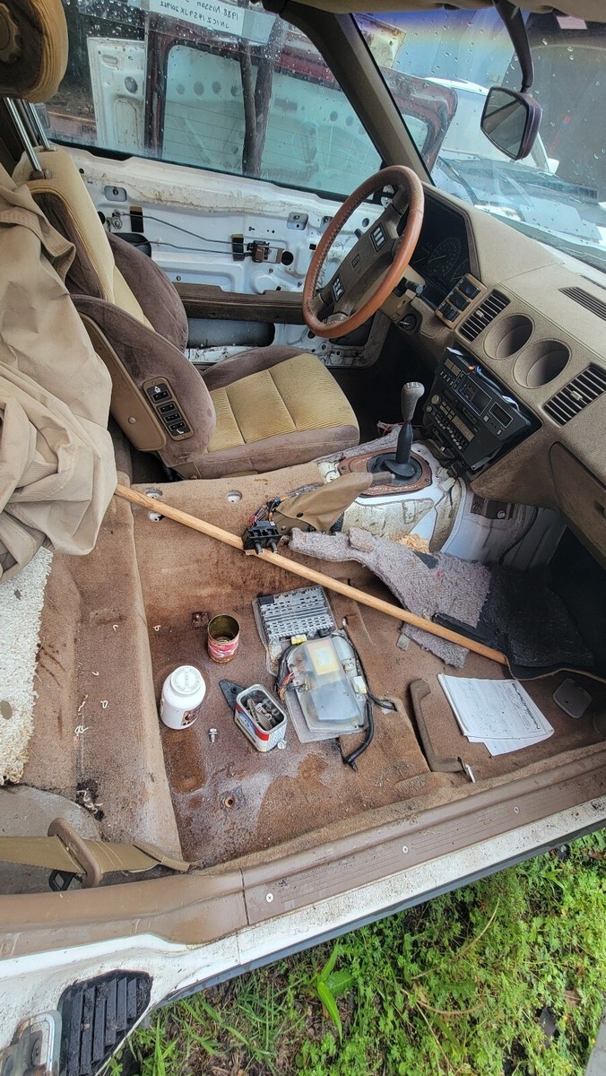 What a fantastic project. But, still a project. Interior was disassembled. Some is missing but I believe I have found the other seat. The left rear is hit. I believe it is fixable but did not get underneath to look. The Turbo engine appears complete. Unknown if it runs or even turns.