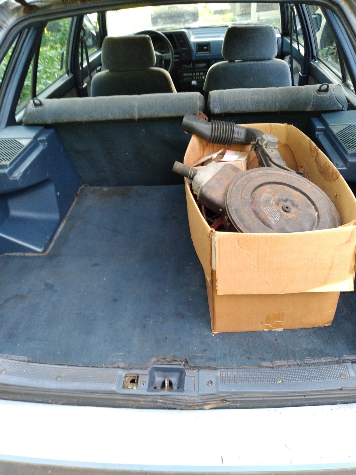 Straight, rust-free body, except for spot on hood. No rust underneath. Front bumper bent out on left side. No rips in interior. Good glass (small star crack in windshield that can be covered with a dime). Motor cranks but will not start. New coil and ignition control module but no spark detected. Has original wheels. Box of spare parts. Extra head included. I don't know if it was going on or came off. It has been sitting in a garage for the past 30 years or so.