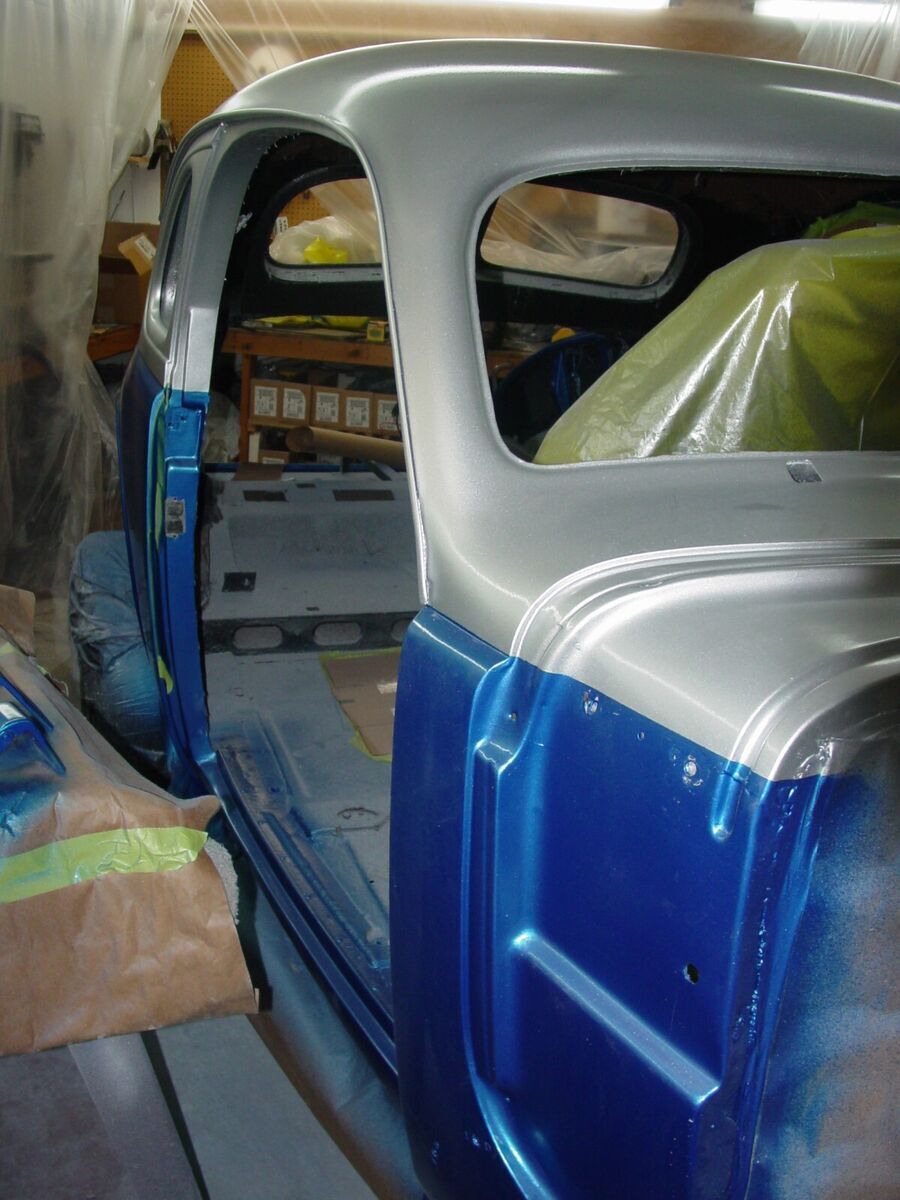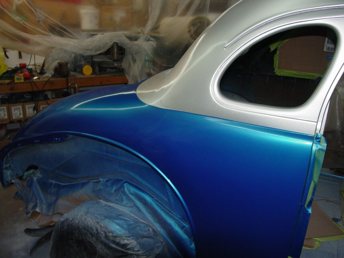 1937 Oldsmobile coupe project car. All welding and body work is completed. I removed the body from frame to clean and paint the underside and frame with Eastwood's Rust Encapsulator. Rust was cutout and patches welded in. A smooth painted firewall is bolted over the repaired firewall. Doors and trunk close nicely. The hard jobs are done.