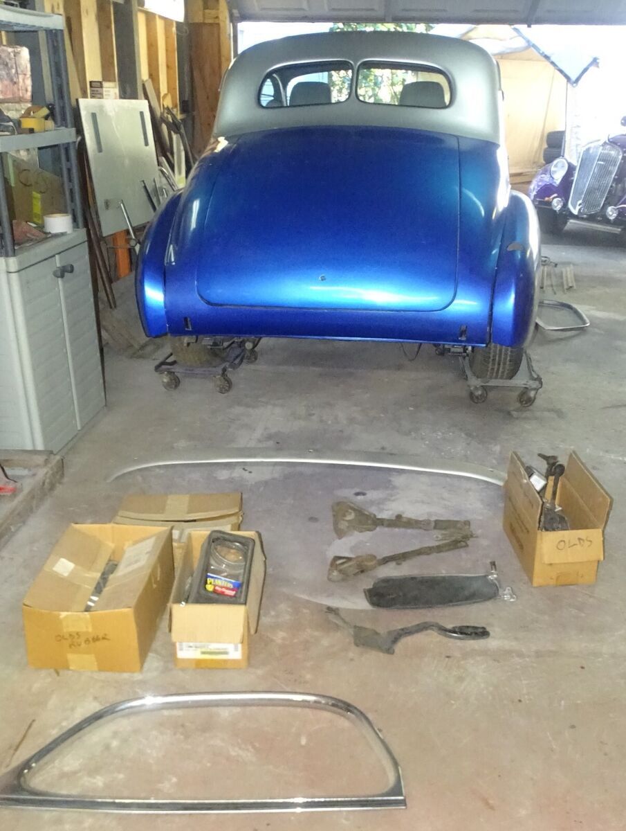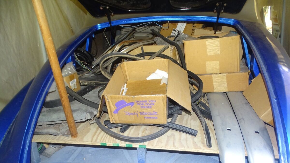 - All the exterior trim is in the car.All the window mechanisms are in the car.All old glass is included.Windshield and door windows are not installed.Leather electric seats from a 2004 Tahoe are not bolted down.All the bumpers, brackets, and bolts for front and rear bumpers are in the trunk. The window trim inside the car was chromed a long time ago.The wing vents are complete, but rusty.Hood trim is in the trunk.The running boards are in the trunk.The car is stuffed full of parts.