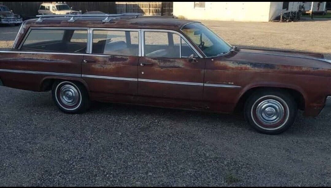 Selling my 63 Olds Dynamic 88 wagon. It's in great shape and has super cool patina. It yard runs and drives, could use a carb rebuild and while the breaks work, I would go through them before putting it on the road. Has the 394 with auto trans. The interior is complete, the seats are in great shape. The carpet was pretty hammered in the front so I pulled it out to check the condition of the floors, which are solid. There is a little bit of rust in one of the rear quarters and a small hole in one of the fenders(as seen in pics).The rear window works great, it has all the original hubcaps, as well as a killer roof rack.