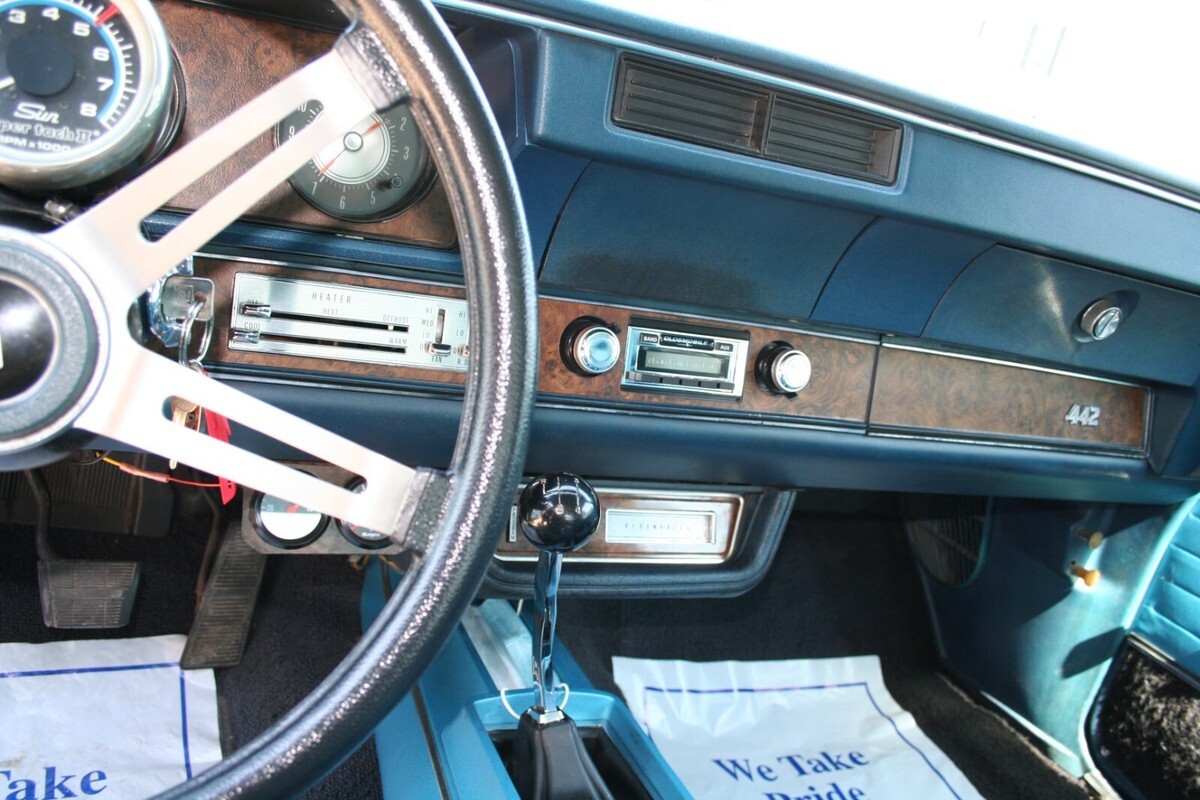 1970 Oldsmobile 442. It is a real 442, not a clone. This car is in excellent condition. It was professionally restored in 2010. Since then it has been stored inside. For the past five years it has been in a climate controlled building. It has all original, matching numbers drivetrain, including the transmission and rear end. It is the original 455 CI engine and M21 Muncie 4 speed transmission. The heads were reconditioned in 2011. It has an aftermarket aluminum intake and a Holley carburetor. The original, factory, intake manifold is included in the sale of the car. It has factory 8 track and rear defogger. The radiator and headliner have been replaced. This car runs and drives excellent. The motor sounds great. No oil leaks, smoke, lifter noise, or any other leaks, and has good oil pressure. It drives really nice. No rattles, shaking or suspension noise. The transmission feels good and shifts like it should. I have had several muscle cars and this drives so much nicer than the other ones I have had. The interior is original and is in excellent condition. Frame and floorboards are original, excellent condition, with no rust or rot. The original color was code 20, Azure blue. It was repainted with 1970 olds 442, code 26, Viking blue, which is a slightly brighter blue. We have a Complete, Rocket report, for the car, that verifies all the above information, and verifies the car was done correctly, and restored very nicely. I will try to download more pictures, and a complete copy of the Rocket report soon. $500 deposit required as soon as auction ends. Full payment must be received within seven days of auction ending. Cash, certified bank check, or wire transfer required.