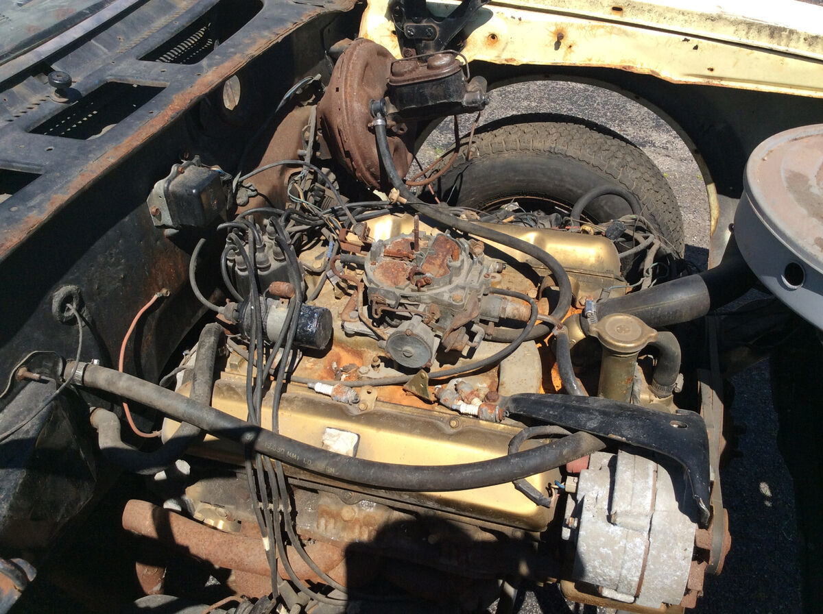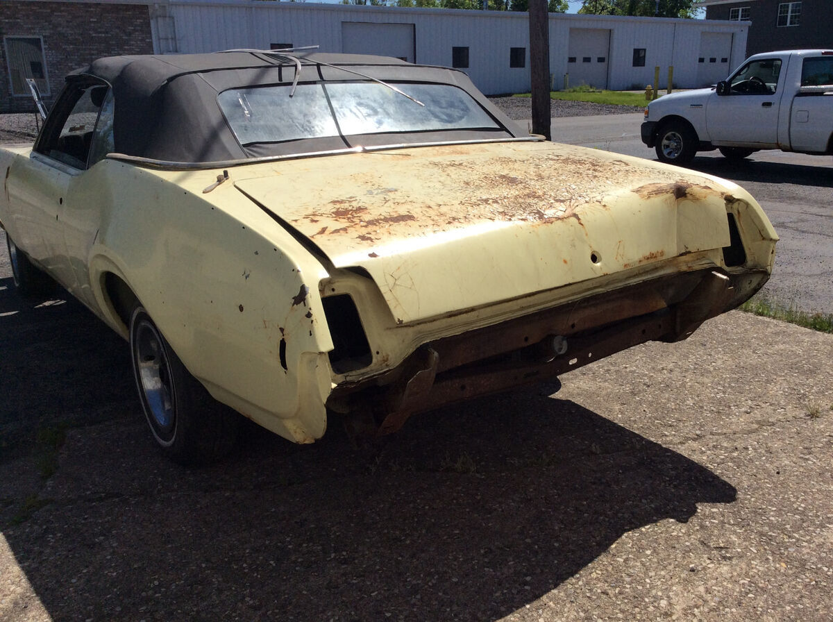 MORE PHOTOS BELOW THE DESCRIPTION!!!For sale is a 1969 Oldsmobile 442 Convertible Bench Seat 4 Speed Car. This is a REAL Yellow/Black car that has been off the road since 1976. This was found under a tarp in a driveway. This needs a COMPLETE Restoration. The trunk floor & floors need work. There is rot in the usual places but for being under a tarp for almost 40 years it is not horrible. The front end is not installed. The fenders have a few bolts just to hold them up. The hood has rot. The engine is a 350 but a 400 is included. This may be the original, but the VIN stamp is too light to read. This car has a power top, power drum brakes & power steering. The trunk area has a big dent as does the lower body panel.Most of the interior is there EXCEPT for the front lower seat. It was missing. The upper seat and head rests are there.All parts pictured are included, there will be parts missing. There are no bumpers, no grilles, no rear marker lamps. The side trim is there. This does NOT have the original transmission. The transmission in the car is a 1970 Oldsmobile M-20 Transmission. THIS NEEDS A LOT OF WORK!VIN: 344679M409952Mileage showing: 86351NY was not a title state until 1972. This comes with a transferable registration. PLEASE MAKE SURE YOUR STATE WILL ACCEPT A NY TRANSFERABLE REGISTRATION.$500 deposit is due within 24 hours of auction close, balance due by certified funds/wire transfer/cash prior to pickup.Buyer is responsible for all transportation costs, we can help arrange shipping if you are not planning on picking it up yourself. More Photos available below. You can click on any photo to go to the gallery then you will be able to see the full size images.
