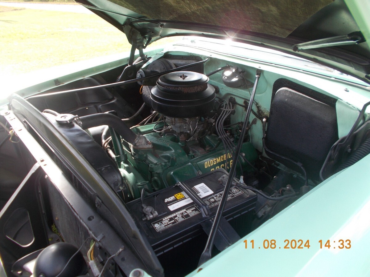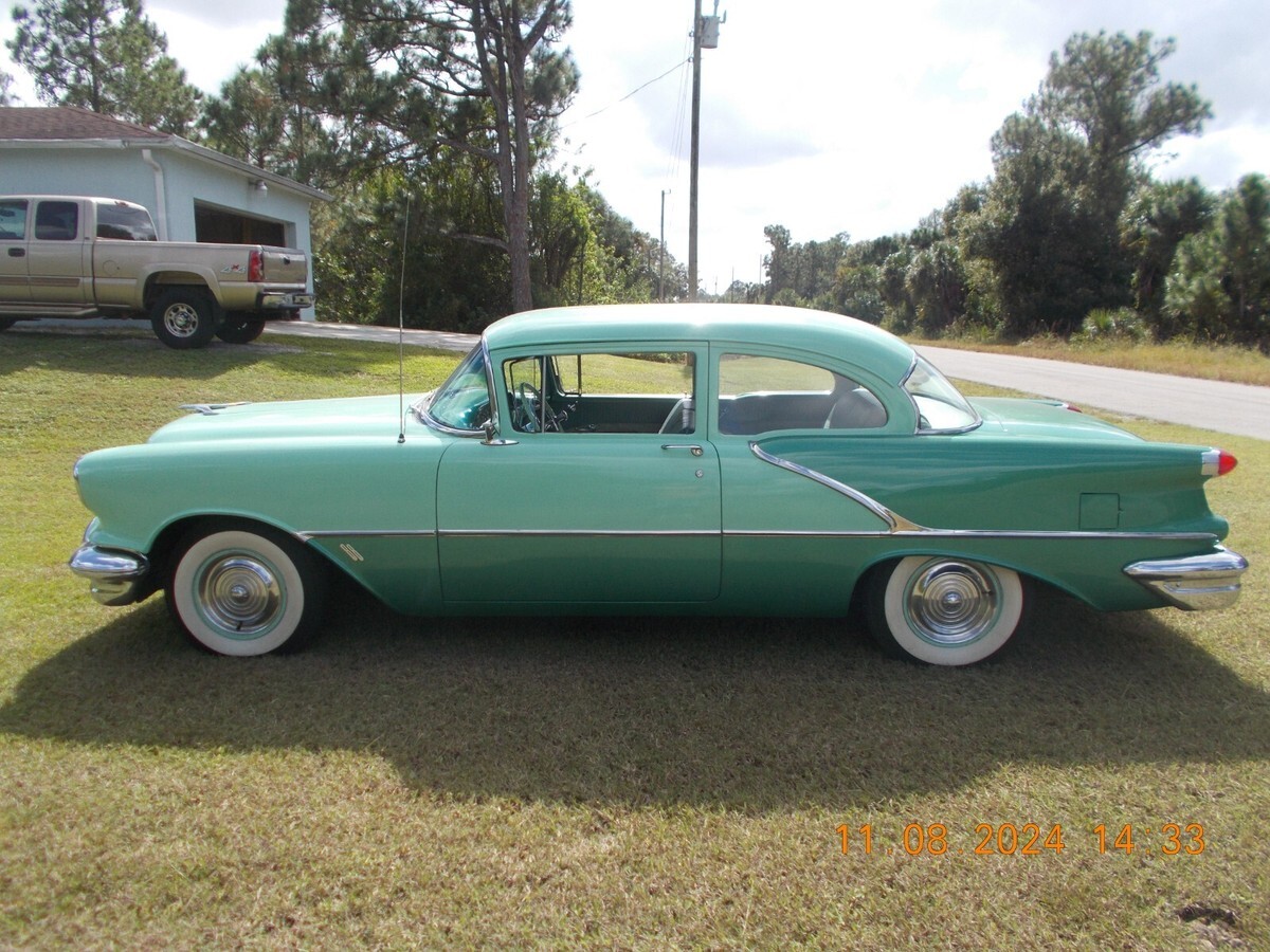 '56 Olds base 88 2 door sedan. Looks & runs well, very clean. All parts are included to add PS, PB, 4-barrel carb, & numerous other parts, with sale of car. Believed to be all original. Shipping to be arranged by buyer.