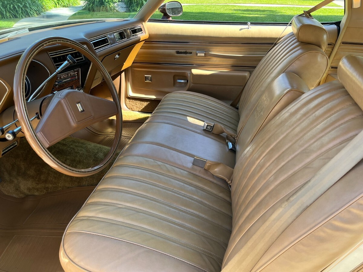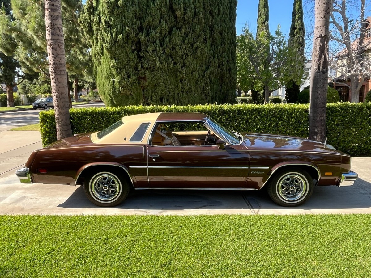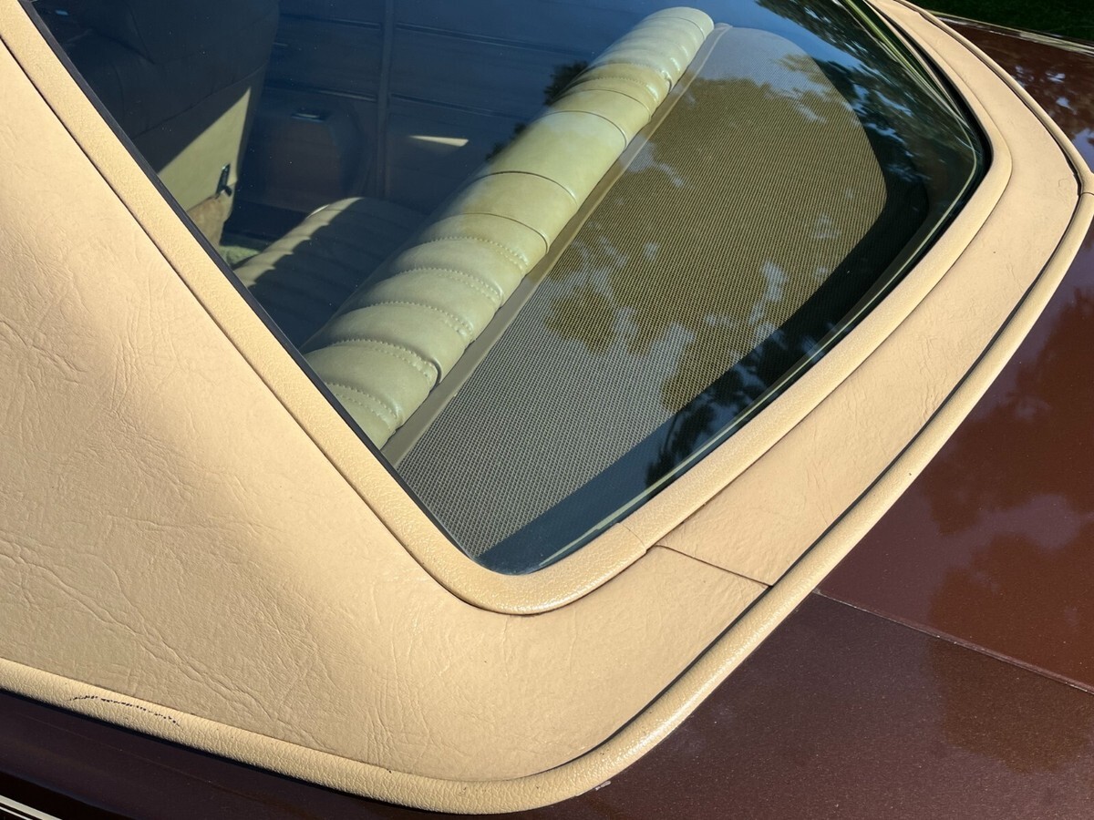 This 1977 Oldsmobile Cutlass Supreme has fewer than 33,000 original miles and remains all stock. It was sold new in North Carolina and remained there until I bought it (with 27,000 miles) in 2017. The car is rust-free – even under the vinyl top. Paint and stripes are original, applied at the Doraville, Georgia Oldsmobile plant. The ‘plastic-chrome’ trim on the body side moldings is crinkly in a couple of places, but does not detract from the car’s appearance. The bumper fillers appear to have been replaced, and are in like-new condition. My best guess is that the Olds dealer that sold this car in 1991 replaced them before the sale. Interior is all original, except for the driver’s side lower (hard plastic) door panel, which I replaced due to deterioration. The imitation inlaid wood trim on the steering wheel is intact, but slightly warped. Seats are in amazing condition, as are carpet and other interior materials.