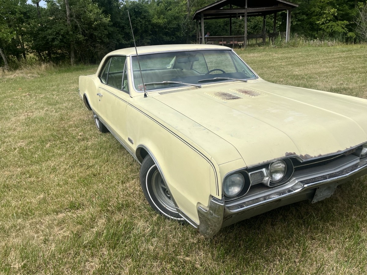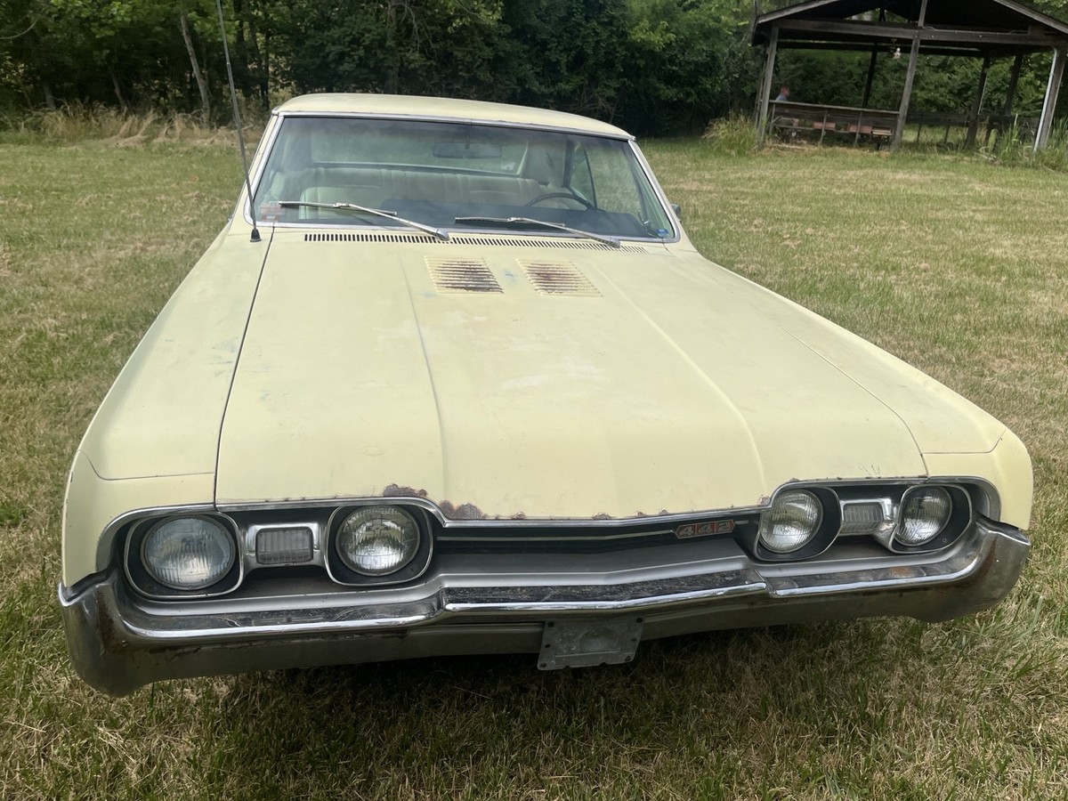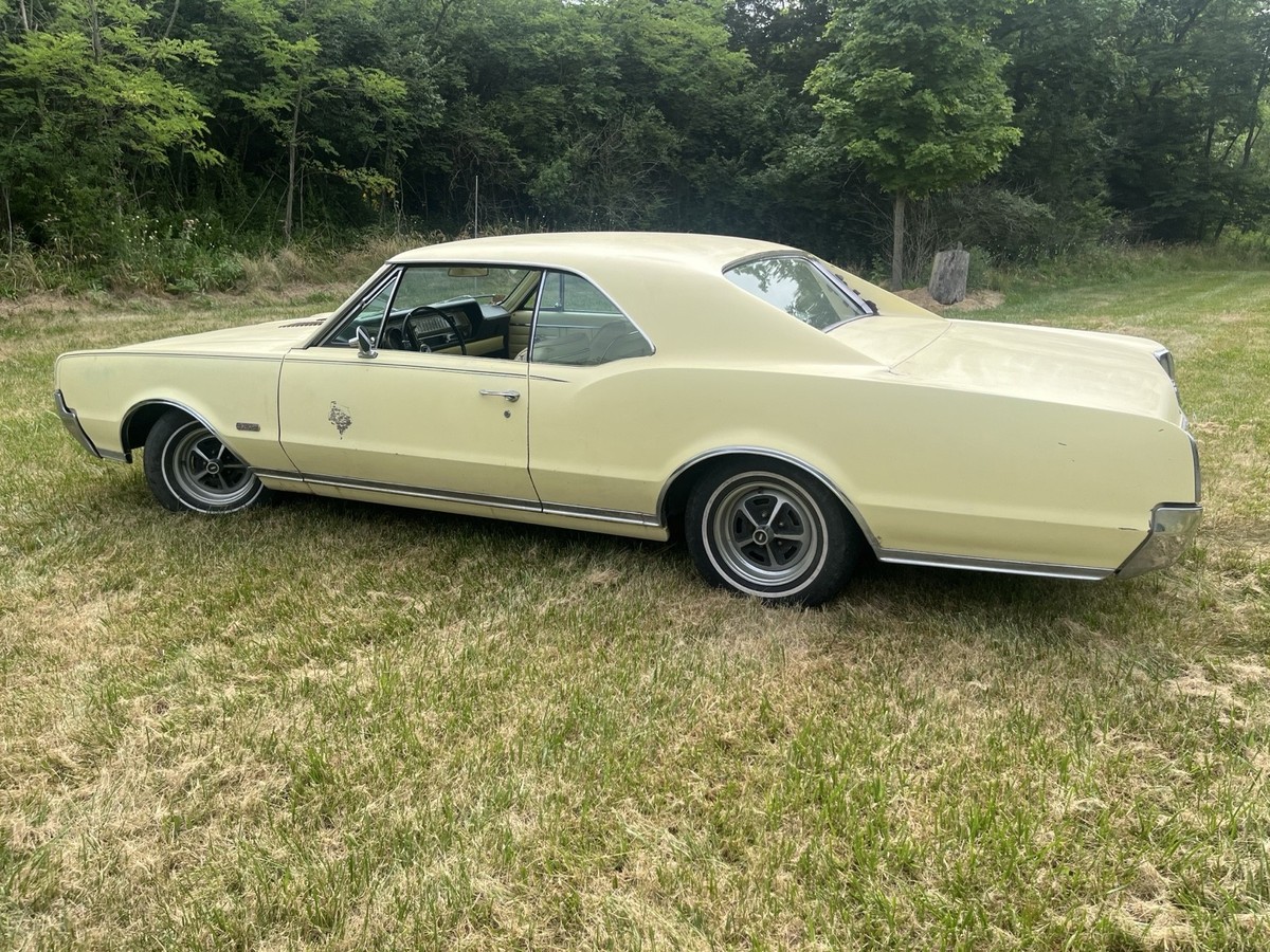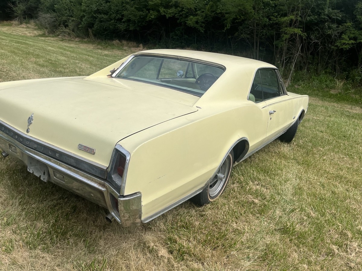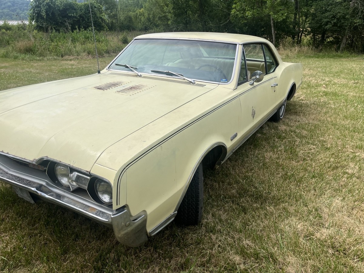 ‘67 Oldsmobile Cutlass442 400 4 speed engine, 58,040 original miles, one owner, 400 cubic inch high compression new rebuilt engine (rebuilt by Don’s Crank Shaft, Cincinnati, have receipt) Car is all original. Never wrecked, original paint (surface rust only), original interior (8 1/2-9 out of 10), new carburetor, rebuilt starter, new master cylinder, new brakes, all new belts and hoses, new tires, new correct fit exhaust, new fuel pump, gas tank removed, cleaned and reinstalled. All paperwork and receipts from when car was new. Original ID Car in Booklet. Runs and shifts great! Road ready! Clean title.