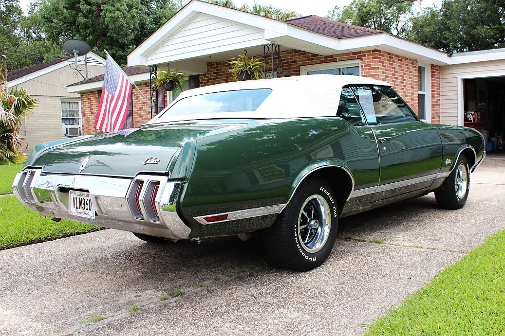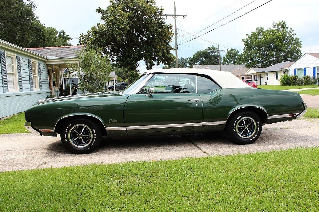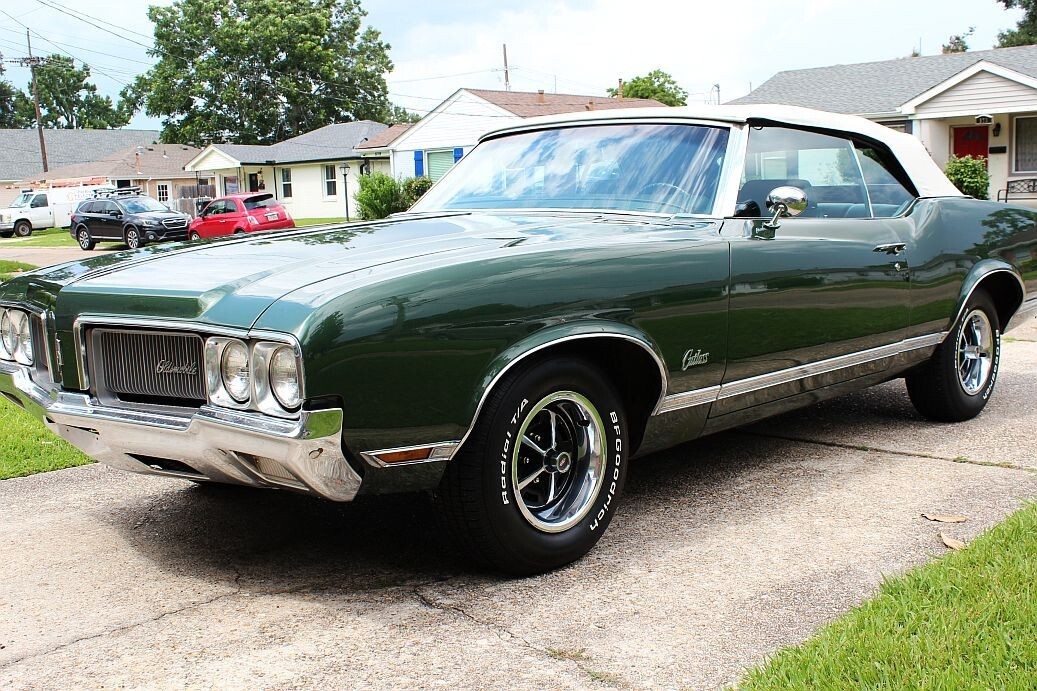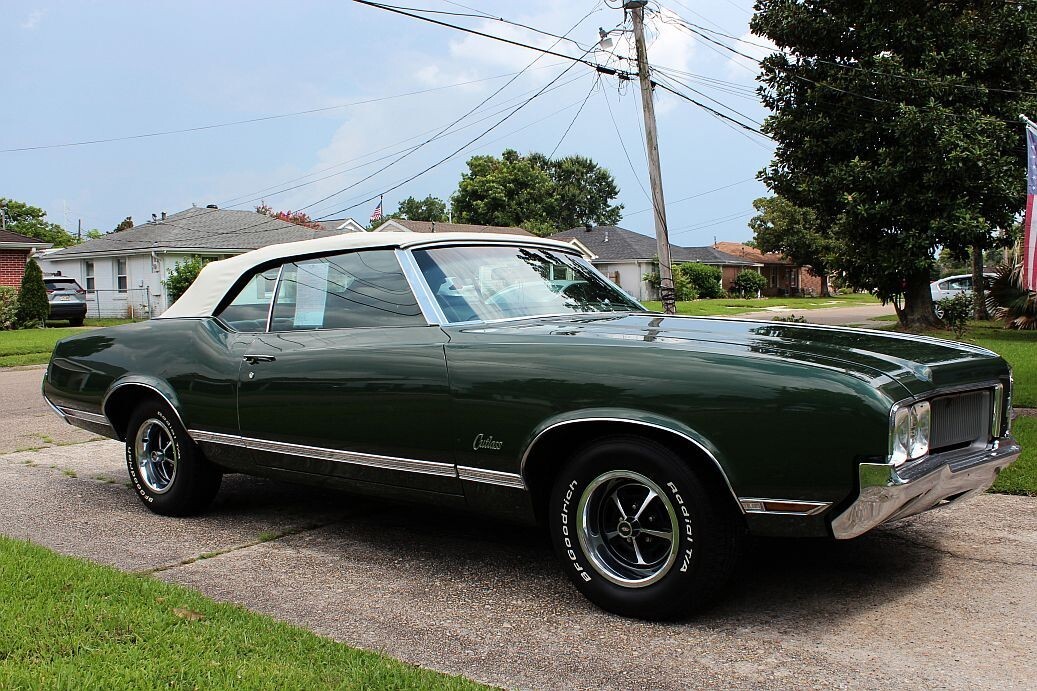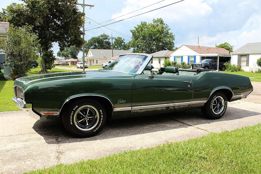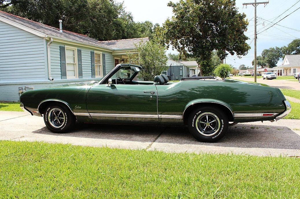 The 1970 Oldsmobile Cutlass is a classic convertible car with a green exterior and interior color. It has 4 seats, 8 cylinders, a 5.7 L engine size, and a manual transmission. This vintage vehicle has a clean vehicle title and is a United States manufacture car, known for its Oldsmobile # Matching 350 4- Barrel engine. Perfect for collectors or car enthusiasts looking to own a piece of automotive history.1970 OLDSMOBILE CUTLASS SUPREME CONVERTIBLENUMBER MATCHING OLDS 350 4-BARREL ENGINEMUNCIE M-20 4-SPEED TRANSMISSIONRALLY PACK GAUGES - TICK TOCK TACHCORRECT SHERWOOD GREEN & WHITE CONVERTIBLE TOPORIGINAL DEALER INVOICE & PROTECT O PLATEFE2 - 442 SUSPENSIONG80 - ANTI SPIN REAR AXLEJL2 - POWER DISC BRAKESM20 - MUNCIE 4-SPEED TRANSMISSIONN10 - DUAL EXHAUST SYSTEMPX8 - WIDE OVAL TIRESPO5 - SUPER STOCK 14" WHEELSU21 - RALLY PACKAGE GAUGES-TICK TOCK TACHFOR SALE BY OWNER - KEVIN 504-273-8838