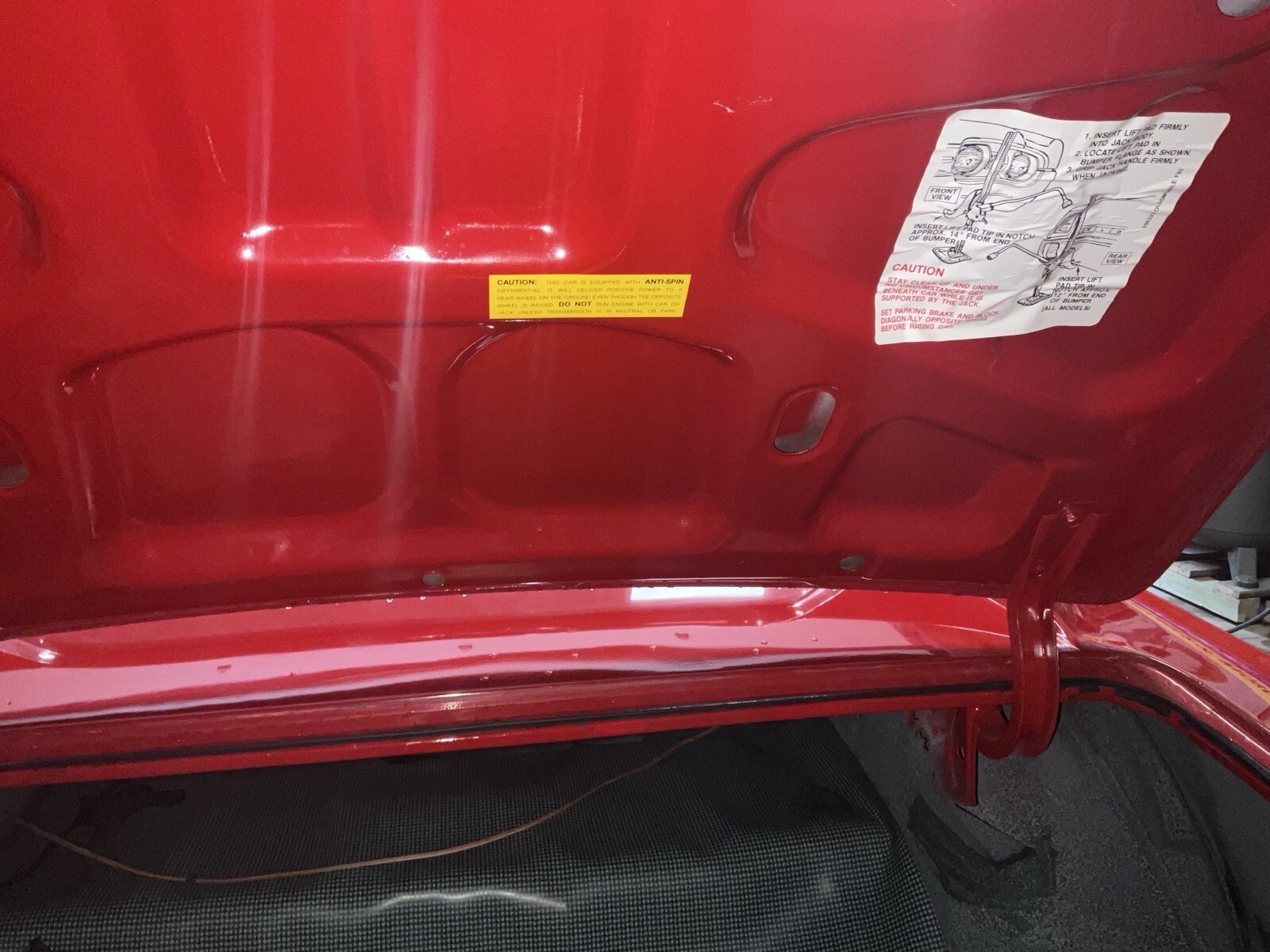 Original louvered 442 hood needed minor repairs, but looks great and is very solid with new hinges and springs.
