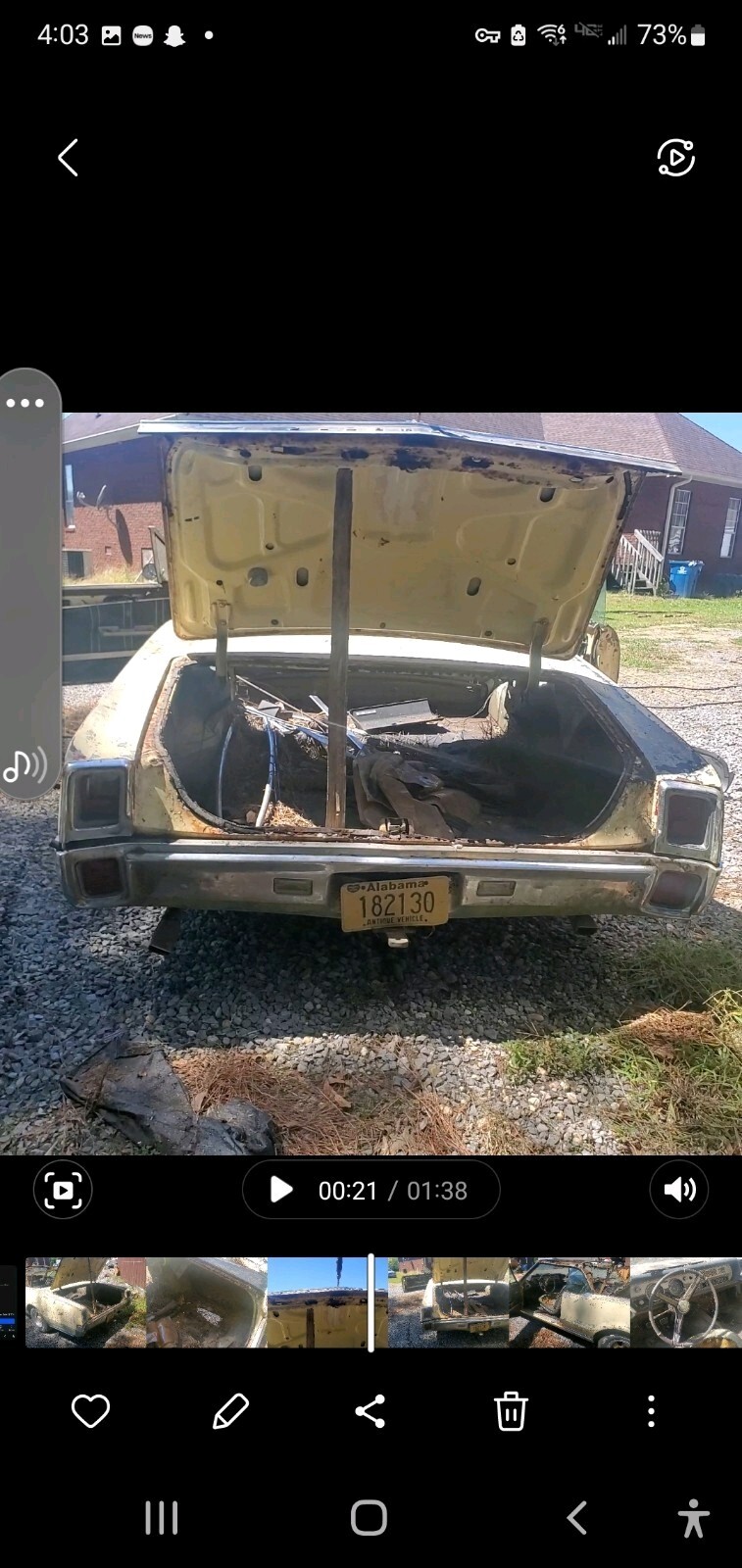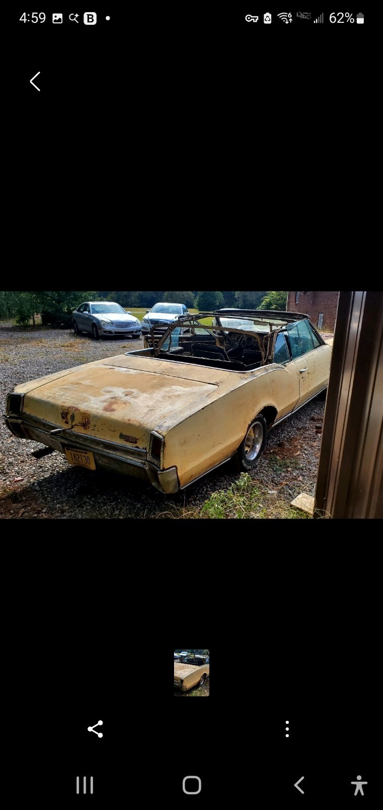 I have owned this car for over 20 years.. Had planned to restore it... Too many projects..Car has been sitting outside for many years no place to put it.. I have decided to let it go. This is a hard car to find.. I never registered it or titled it comes with bill of sale.