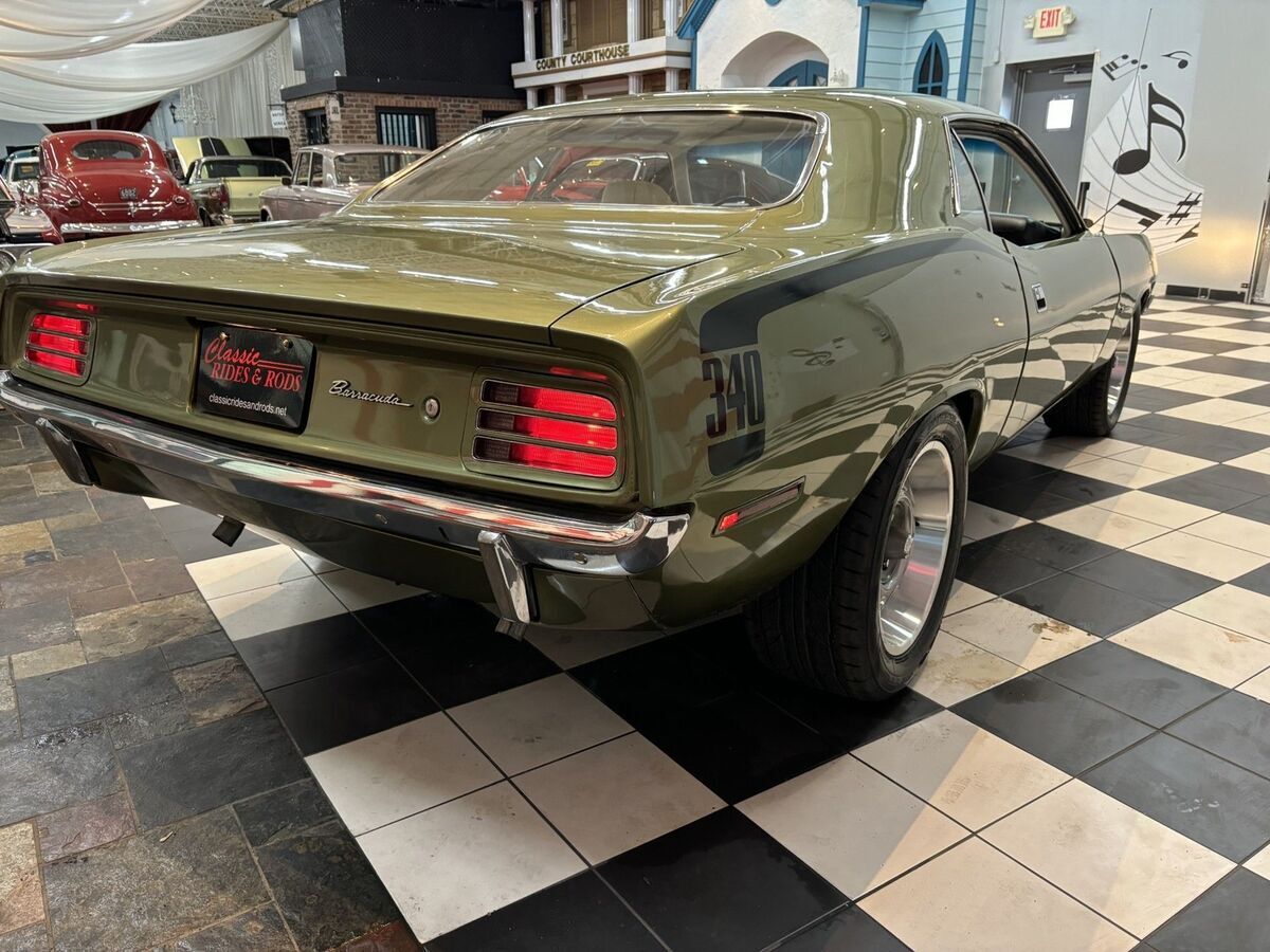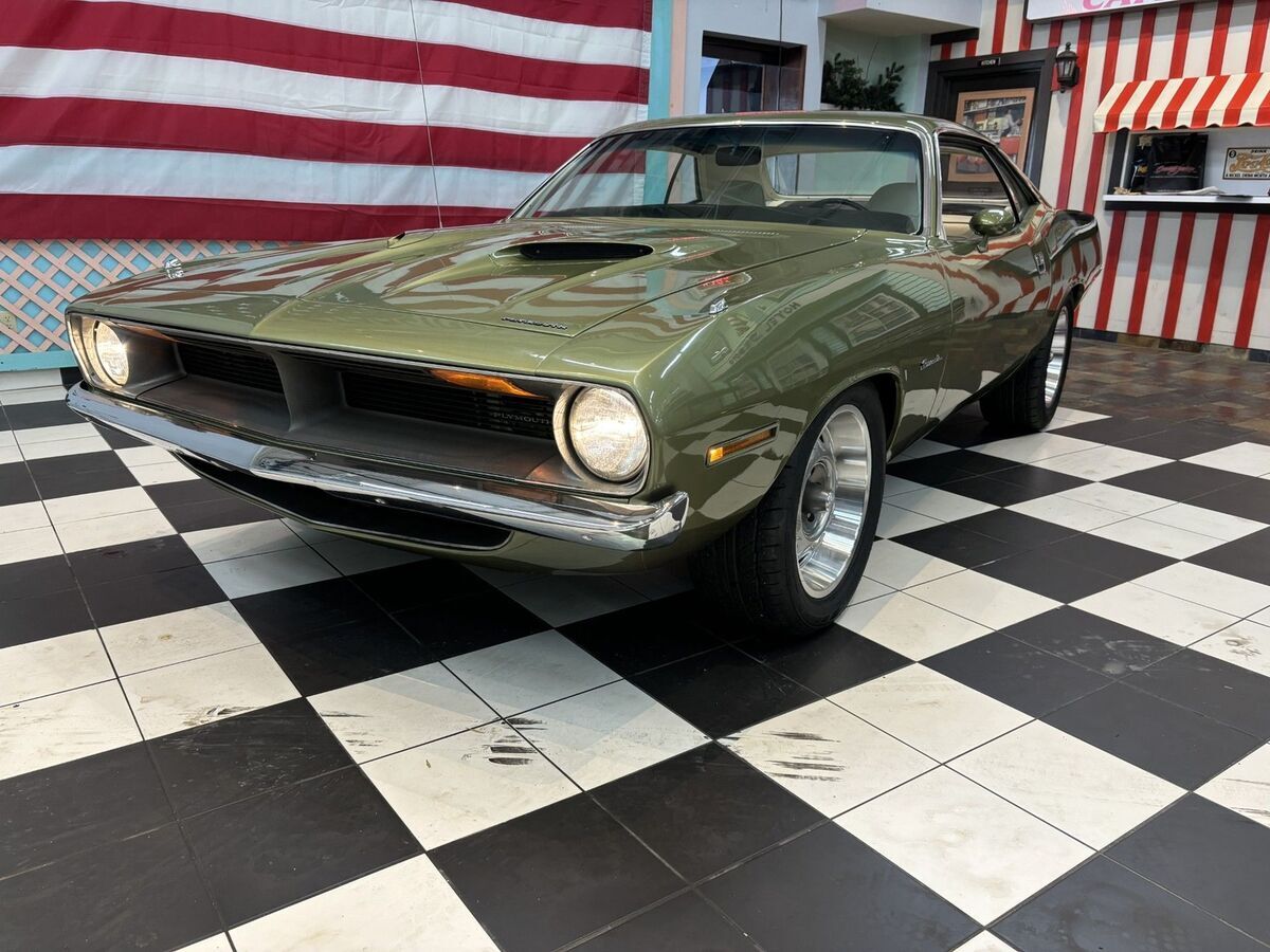 This restored 1970 Plymouth Barracuda is powered by a 340ci V8 engine backed by a 4-speed manual transmission. It is finished in its original FF4 factory color of Lime Green Metallic, with an interior that features white upholstered seats with black carpeting. It is equipped with power steering, power brakes, Pioneer AM/FM CD, Mickey Thompson valve covers, chrome-finish alternator, Edelbrock carburetor, air cleaner and dual exhaust. For more info call Jordan at866-733-4451 Video 5ymIFP1A4qg