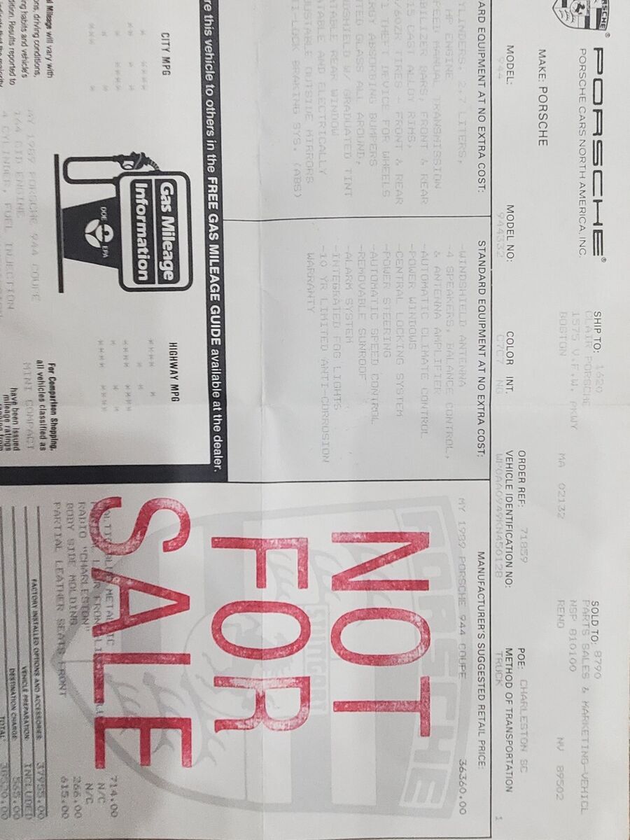 CALL TITUS 863 661 0292NICE CLEAN NO RUST 89 PORSCHE 944 COUPE 4 SPEEDPAINT IS NICE--ROOF CLEAR IS THIN--PAINT CHIP ON FRONT BUMBEROVERALL NICE QAULITY CONDITONSEAT SHOW WEAR BUT STILL GOOD SHAPE--ARM REST SHOWS WEARDASH HAS CRACKS--NEW UNUESED OVERLAYSEVERAL NEW PARTS AND ORIGINAL WINDOW STICKER AND RECORDS