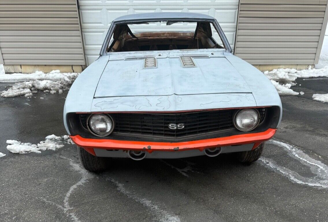 CALL JAY AT 518-857-03111969 Camaro SS 350 Project CarFactory Endura Front Bumper Only 12650 (5%) of 1969s had theseOriginal Paint Code 72 B Hugger Orange Black Vinyl TopInterior Trim 712 Black DeluxeFront Disc Brakes15x8 Rally WheelsAll new Front Suspension Ball Joints Bushings ETCVery nice original grilleFront Fenders are solidDoors have had NOS GM Skins installed (sticker still seen on one)Everything seen in the pictures is includedCar was completely disassembled years ago and sand blastedThe project got put to the sideWe bolted the car back together to make it easier to transportOriginal 12 bolt rear is missing car has a 10 bolt non posi monoleafAs seen will need a full restoration but amazing car to build with the color combo and optionsThe outer rockers have been removed we do have replacements are are included with the carIt does roll easy to be loaded on a trailer or truck.Car will need complete restoration.Cowl tag and vin tag are both in place as seen in the pictures hidden vins matchNew York State is a non title state for pre-1973 vehicles .The registration has been lost as the car hasn’t been on the road in many years. It will be sold with a NOTARIZED BILL OF SALE ONLY.A 500.00 NON REFUNDABLE DEPOSIT IS DUE IMMEDIATELY Must be paid in full within 7 days .We will work with you on pick up time if needed.