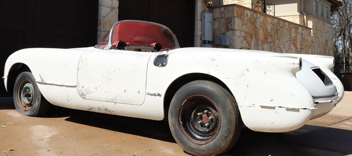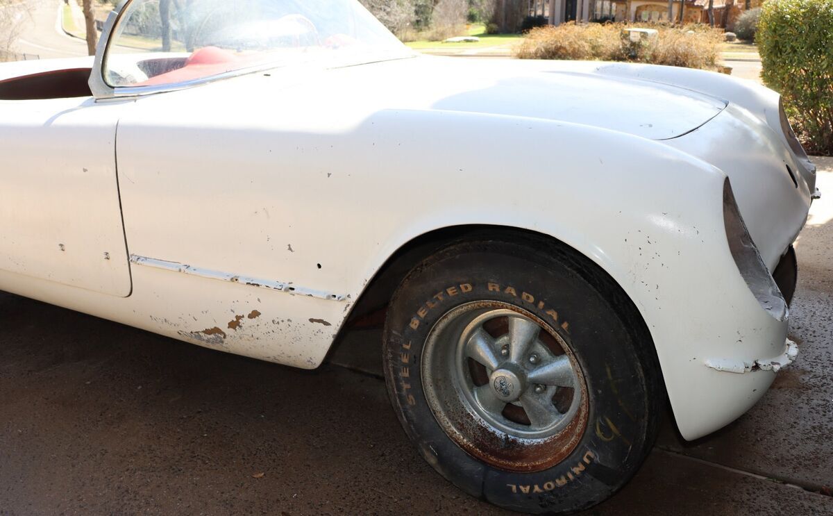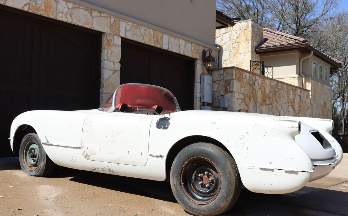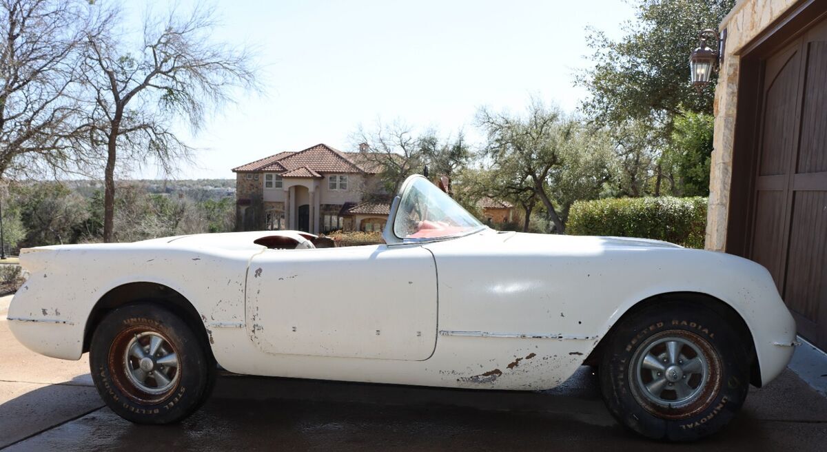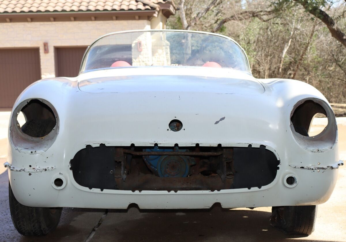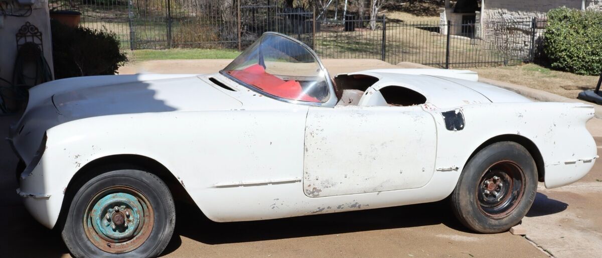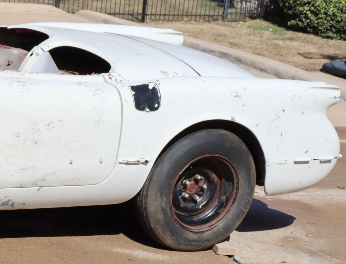 1954 Corvette project car with Texas title and VIN plate (VIN E54S002115). A perfect project for a Resto Rod or restore to NCRS specifications. The car includes asuper nice body on a rolling chassis with 2 vintage Crager wheels and 2 steel wheels, original steering column, 6 cylinder engine block (NOM) with head, Powerglide transmission with adapter plate, engine mounts, transmission mounts, front and rear suspension, rear banjo with differential, solid firewall, solid floor boards, fiberglass waterfall console, solid transmission tunnel, complete windshield frame with glass and trunk hinge tower. The frame has light surface rust and will need a good cleaning and or media blasting. No other parts are included with the car (no gauges, seats, bumpers, door hinges, door hardware, etc). The project rolls and steers for easy transport onto a trailer.Personal inspections are welcomed and encouraged. I require a $2000 non-fundable deposit within 24 hours of the end of the auction and the balance to be paid within 72 hours of the end of the auction. No Paypal due to the fees, sorry. The car does not have any warranty, neither implied nor expressed. Shipping expense is the responsibility of the buyer. The reserve is low and the car will sell...Please call me at 512-799-8088 or email me at [email protected] with questions.