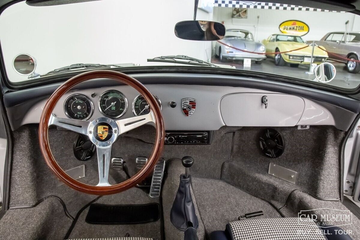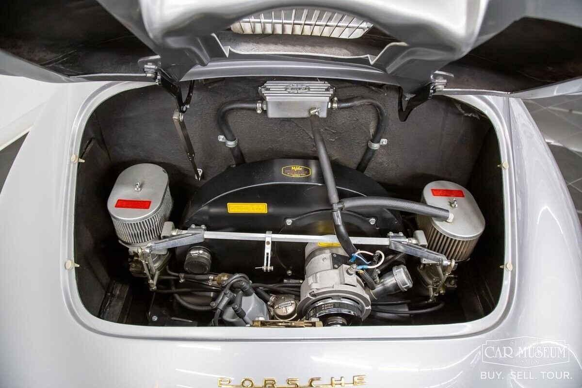 We are very pleased to offer this beautiful constructed 1958 Porsche 356A Carrera GT Outlaw Coupe replica finished in traditional Porsche GT Silver exterior and Dark Navy Blue interior fitted with comfortable Carrera Speedster bucket seats with black/white pepita cloth inserts! At the rear rests a brand new, performance-tuned 2180cc dual port engine, ported & polished EMPI fly-cut heads; fully balanced 90.5 mm Mahle pistons & barrels, 82mm counter-weighted crankshaft, and connecting rods; 110 Engel Scat cam, dual Weber 44IDF carburetors, lightened flywheel, 200mm Sachs clutch & cover, full-flow oil system with remote oil filter, additional external oil cooler, along with a modified single-tuck center-exit exhaust system that now produces an estimated 150+ horsepower! The former owner had this engine built by a retired Porsche mechanic to his specifications, along with a brand new clutch in 2020. The mileage on this engine amounts to only 350 miles.