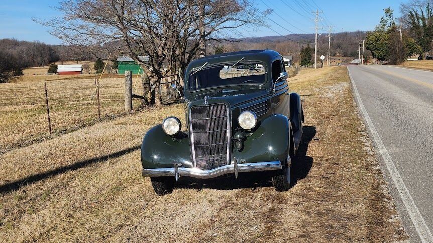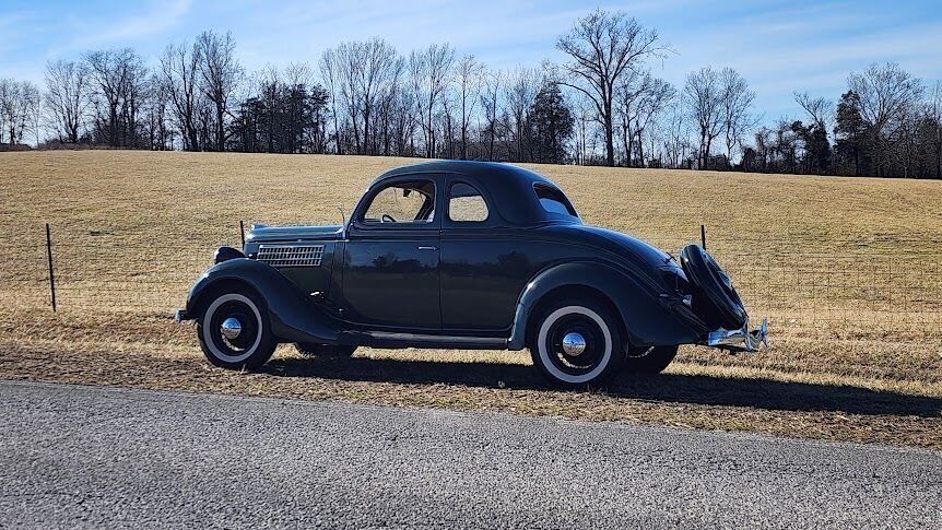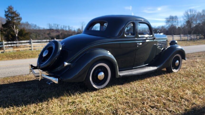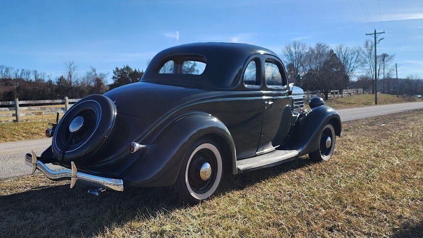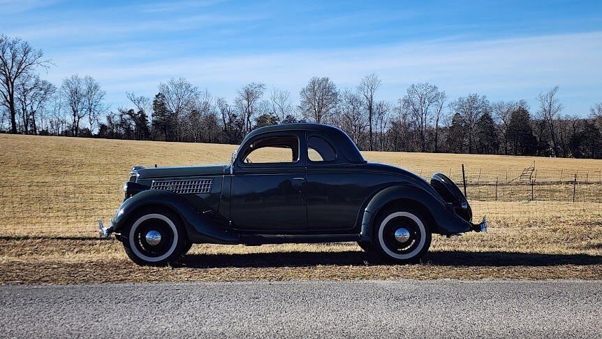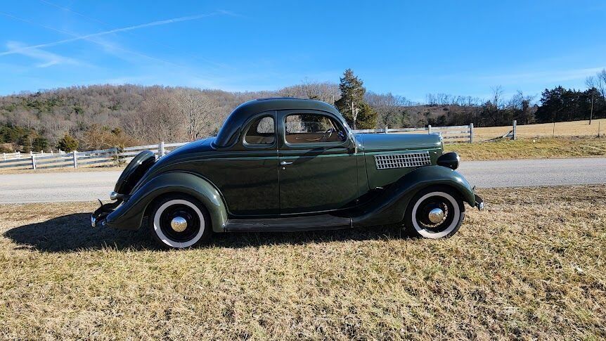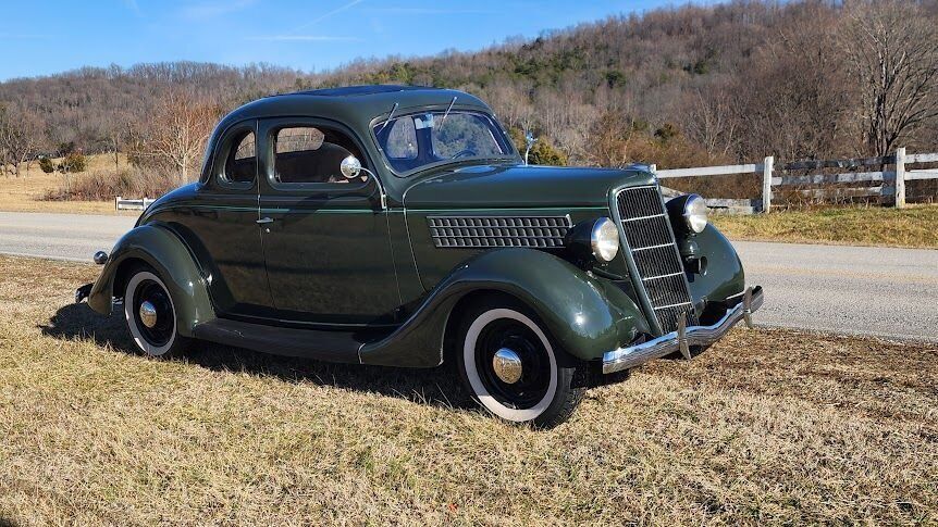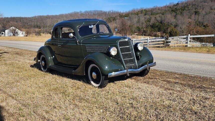 Incredibly original 1935 Ford 5 window coupe. She appears to wear her original factory paint job with the exception of the rear fenders which have been nicely repainted and very well matched to the original paint. The body is solid and in excellent condition with some bubbling at the lower corners of the trunk opening. The interior is original, but the floor mat is assumed to be a replacement since it is too nice to be 90 years old. The seats are nice and the rest of the upholstery is very good overall, but does have some staining as would be expected in a car this age. The headliner is original and overall in good condition, but it does have a few holes and some stains. The windows work nicely. The original flat head V8 starts quickly and runs well. The transmission shifts as it should. It benefits from the addition of an electric fuel pump and a water temperature gauge.. The flathead V8 runs well with good oil pressure and good power. Valves just adjusted. Steers well and stops well. Tires are OK, but a set of radials should make her drive great. What a cool old Ford with the perfect patina. Driven Man Motors is an enthusiast owned business just off I-40 exit 290 in Cookeville, TN