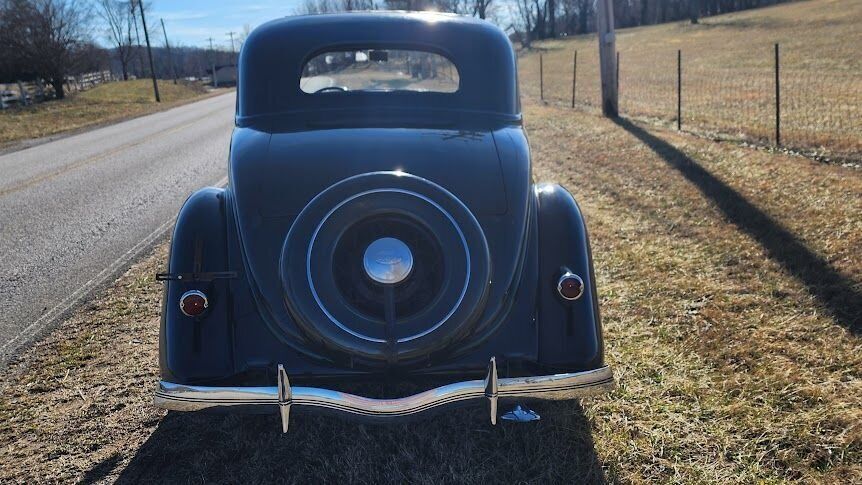 Incredibly original 1935 Ford 5 window coupe. She appears to wear her original factory paint job with the exception of the rear fenders which have been nicely repainted and very well matched to the original paint. The body is solid and in excellent condition with some bubbling at the lower corners of the trunk opening. The interior is original, but the floor mat is assumed to be a replacement since it is too nice to be 90 years old. The seats are nice and the rest of the upholstery is very good overall, but does have some staining as would be expected in a car this age. The headliner is original and overall in good condition, but it does have a few holes and some stains. The windows work nicely. The original flat head V8 starts quickly and runs well. The transmission shifts as it should. It benefits from the addition of an electric fuel pump and a water temperature gauge..