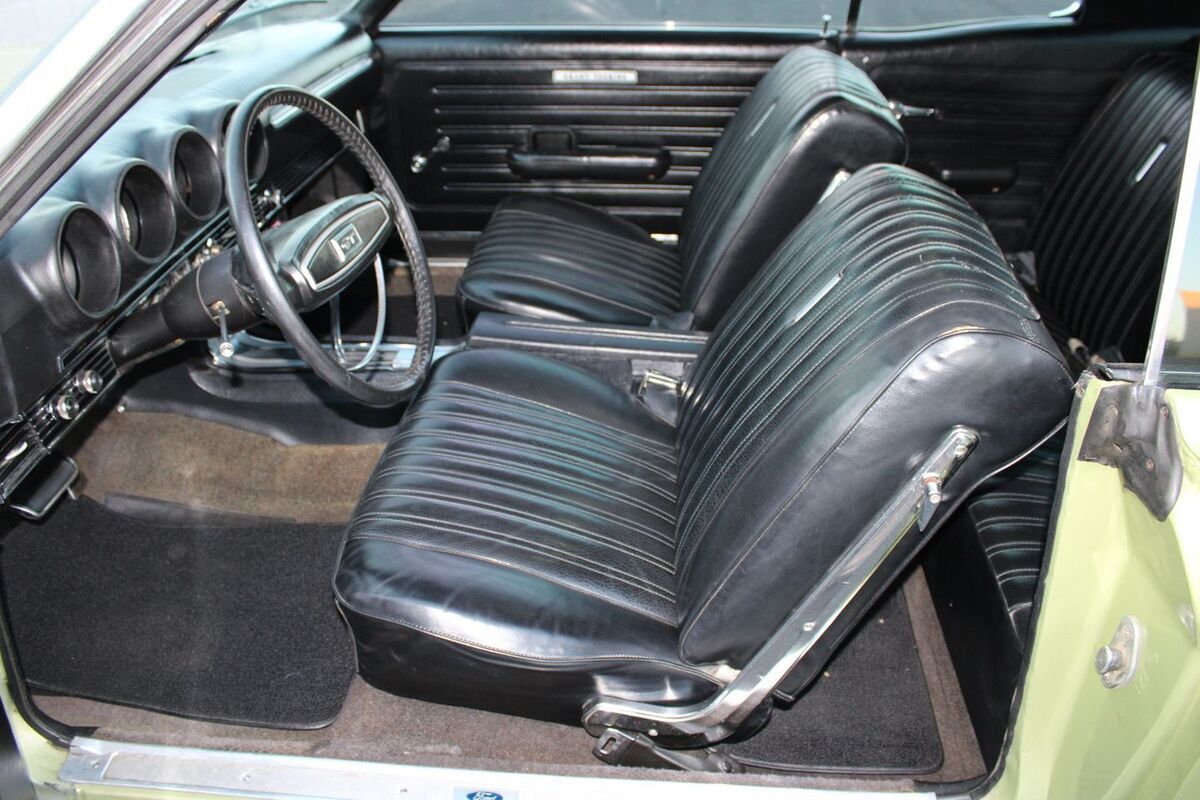 The exterior of this Torino GT is a striking "Lime Gold", a color that captures the spirit of the late 60s and sets this vehicle apart from the crowd. It's not just a car; it's a statement, a declaration of style and taste that will turn heads wherever you go. The car's body is in excellent condition, a testament to the care and attention given by its previous owners.
