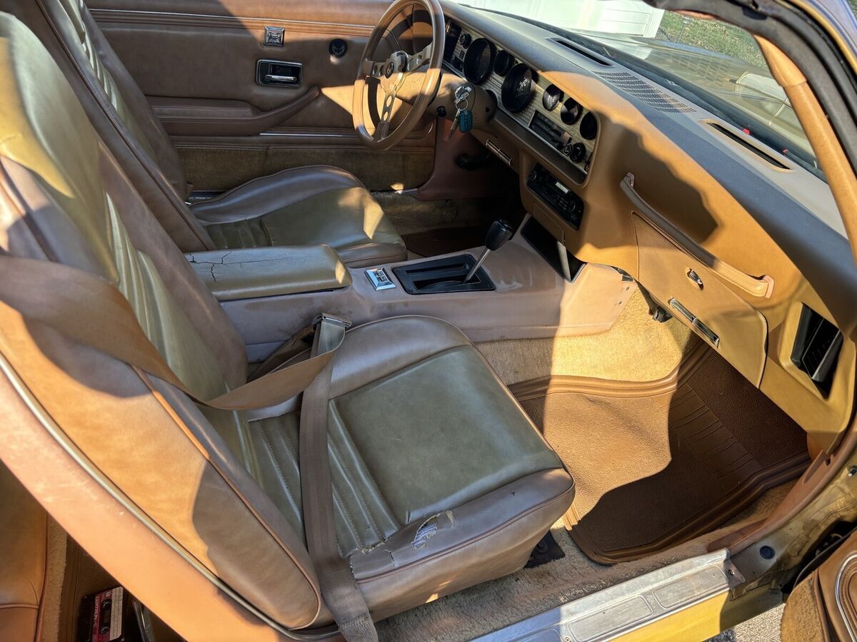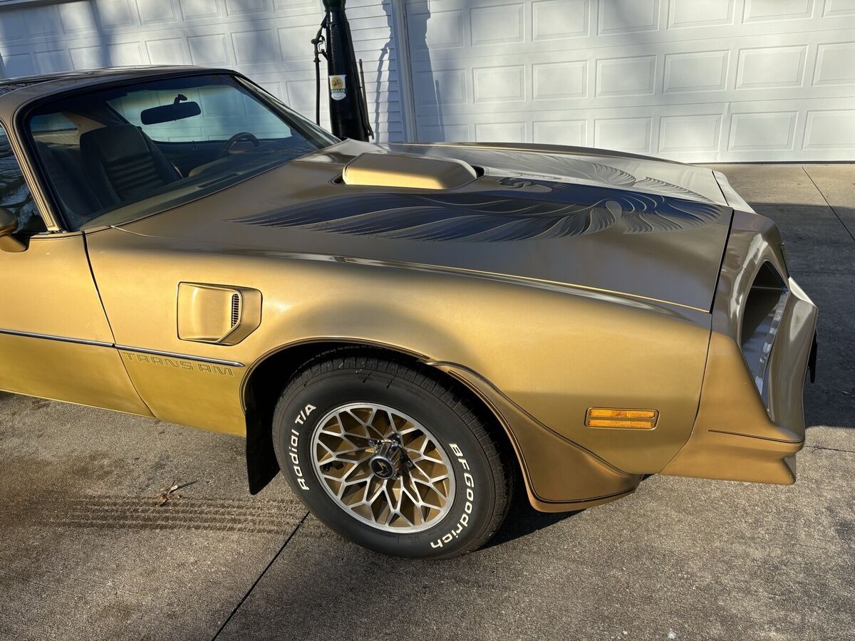 This is a original survivor Trans am Y88 special edition with the Pontiac 400 automatic the title states miles are actuaI I think it’s about 60/70% original paint. The decals appear to be original and show slight aging. Both doors look to have had paint work in the past I tried to show under certain lighting you can see the color variation certain lighting it looks pretty good. From what I have read they had a problem when new matching the gold Y88 paint from panel to panel there is a bulletin in the 78 time period stating this . So it’s a cool original car to keep as is or to have the doors repainted and blend them to match better under certain lighting if it bothers you as it is. The interior dash is in great condition, but both driver and passenger seat bottoms have seem separation. It runs great, drives great the tires I put on about 8 years ago and have under a 1000 miles on them. This is my personal ca, but I am a Ohio licensed Dealer and selling through my dealership. So it’s being sold “as is “ with. No Warranty. This car I really would prefer buyer viewing in person or pay to have it professionally inspected so there is no problem with the survior condition for the buyer. It does have the typical transmission that leaks a little when setting for along time and a slight exhaust leak that sounds like it’s the donut were the exhaust manifold meets the exhaust pipe I never looked into it. It’s a great pretty rare and solid car you can drive as is or put a little into it and take to the next level. It has all the rare y88 gold features and states it’s Y-88 on cowl tag.