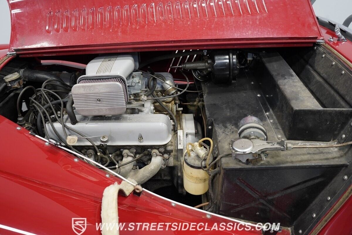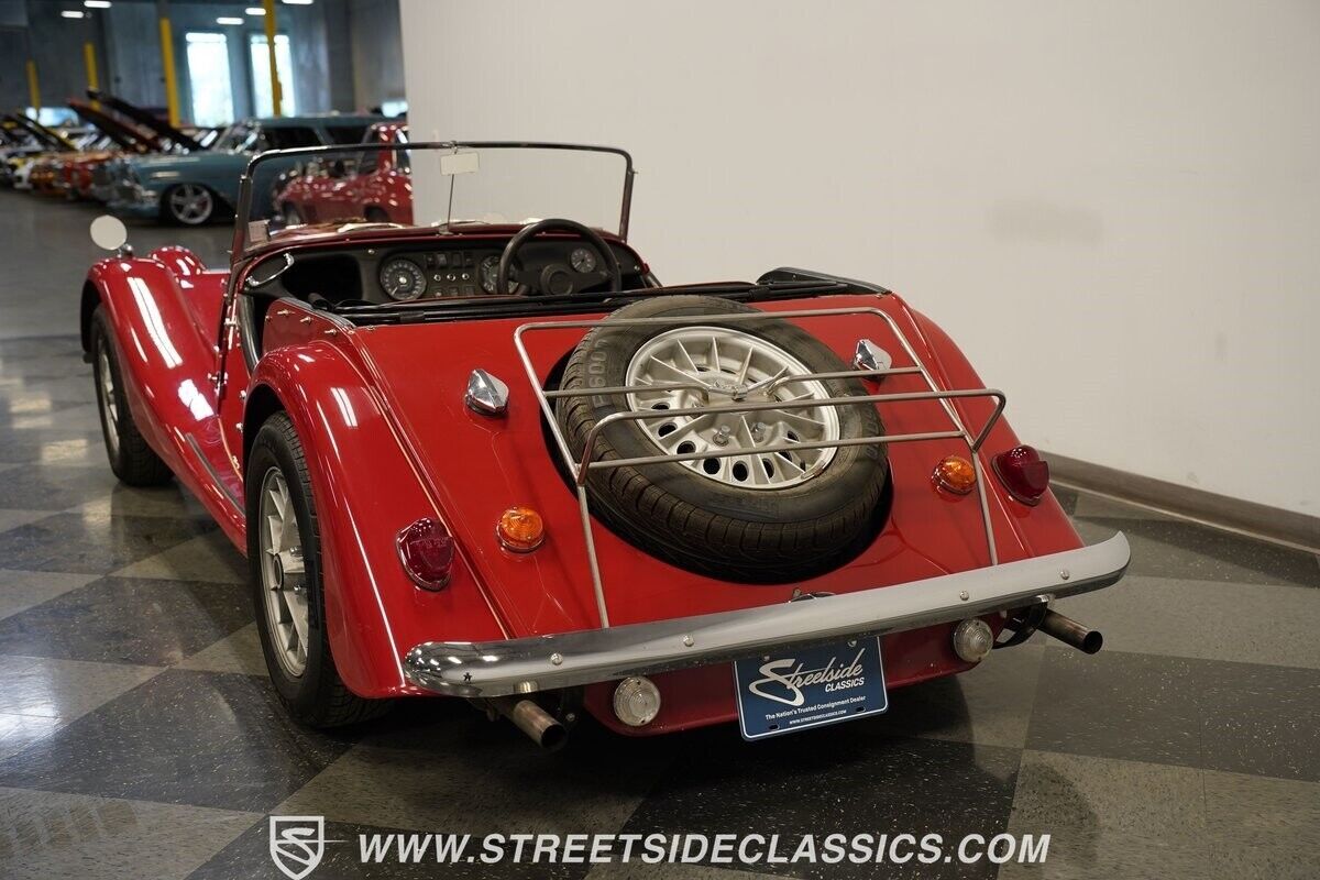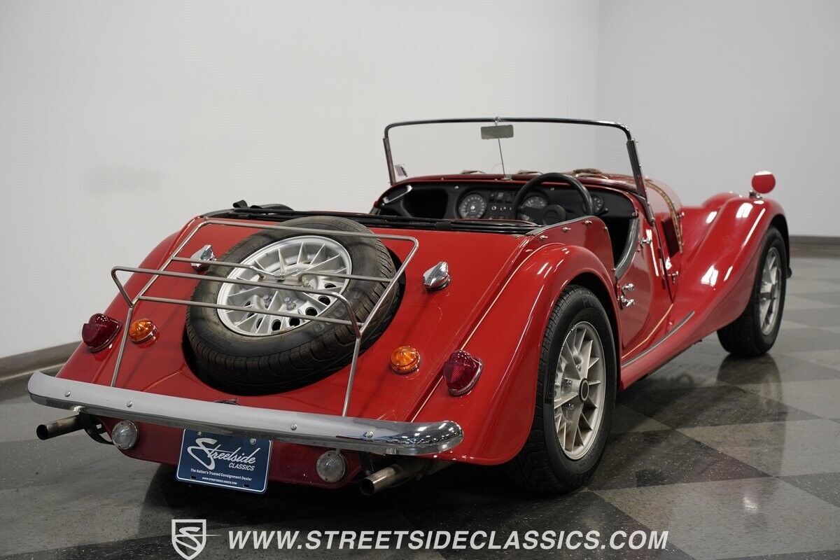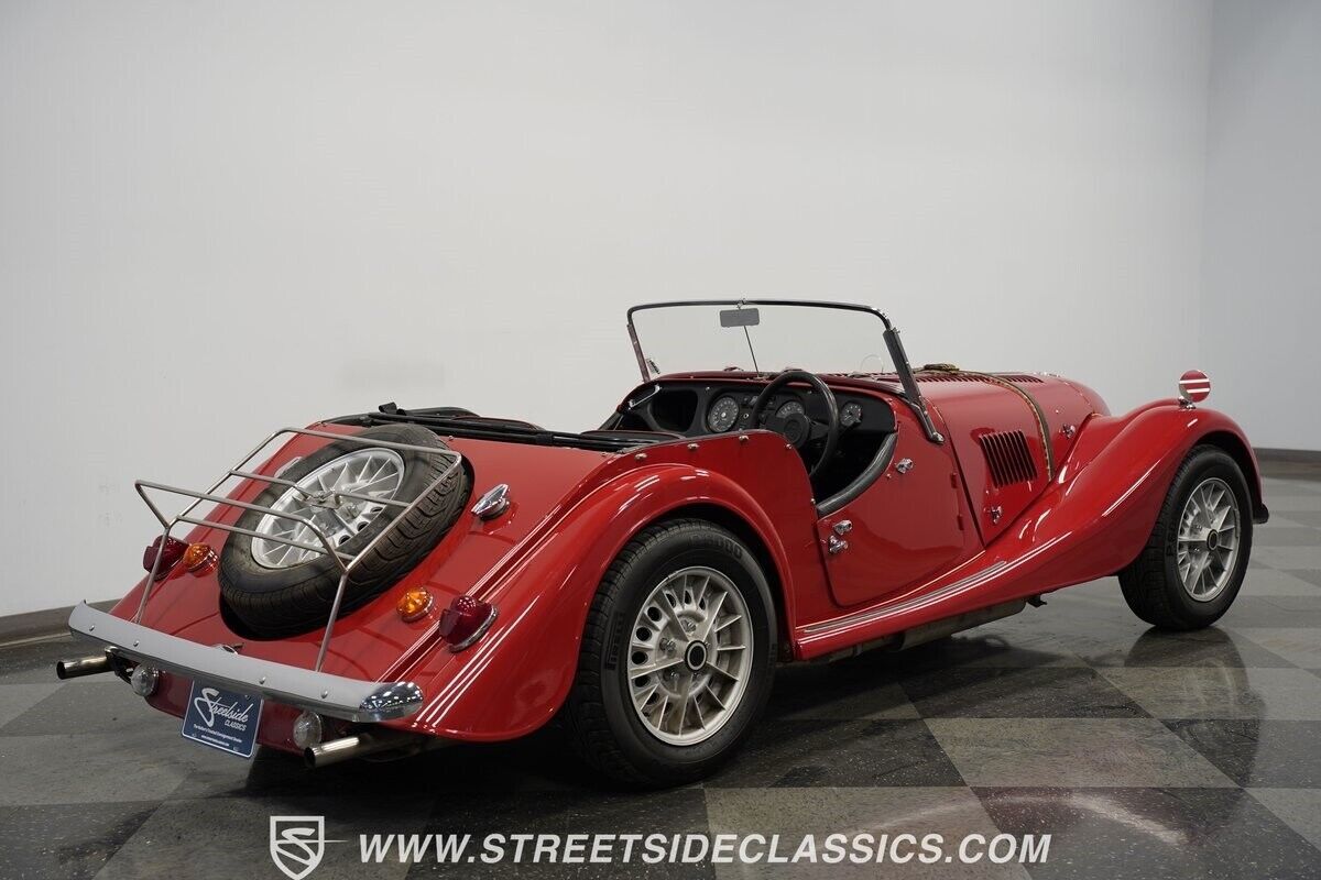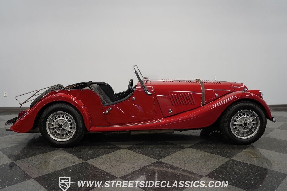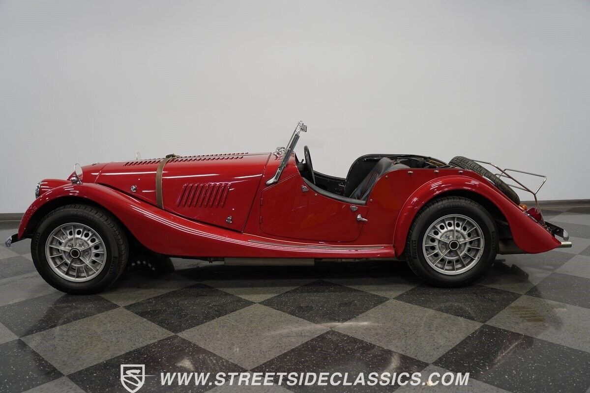 A 3.5L Rover V8 matched to a 4-speed manual gearbox gives this Morgan its go. The aluminum engine runs an Offenhauser intake manifold and Holley four-barrel carburetor for enhanced output. Traditional Morgan suspension uses front coil springs with rear leaf springs for direct road feedback. Front disc brakes handle stopping duties while dual exhausts add V8 sound to the British motoring experience.