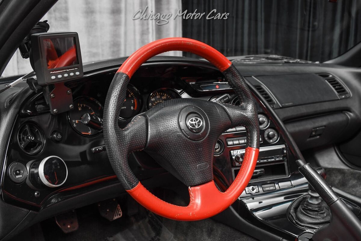 1993 Toyota Supra TargaBlack Exterior over Black/Red Interior*HOT COLOR COMBO**HRE FORGED WHEELS**HKS T51R 72 MM TURBO**SPARCO BUCKET SEATS**ONLY 3K MILES ON BUILD**HIGHLY DESIRED MK4 SUPRA**GREAT CONDITION THROUGHOUT**COMPLETE 2JZ REBUILD WITH SINGLE TURBO CONVERSION*** LOADED WITH TENS OF THOUSANDS IN UPGRADES **UPGRADES INCLUDE:Complete 2JZ GTTE Engine RebuildSingle Turbo ConversionFerrea Dual Spring ValvesCatch Can ExtensionHKS T51R Single 72 mm TurboHKS Dual SSQS Blow-Off ValvesHKS Front Mount IntercoolerVSOP 4" Intake and ExhaustFuel Dampener by-PassComplete Getrag Transmission RebuildClutchmasters FX1000TEIN Adjustable CoiloversHRE 545 20" Wheels in Black with Chrome LipSparco Racing Seats with 5-Point HarnessesSparco Racing PedalsProEFI 128 PackageFIC 1650 InjectorsWalbro 450 Fuel PumpPTFE Fuel Hose KitKoyo Race RadiatorFull Custom Engine HarnessAlpine Head Unit with Focal ComponentsJL Audio Amp and SubwooferCustom VSOP Enclosure for SubwooferS/S Braided Brake LinesAP Racing Brake CalipersWhifbitz Front BumperBomex Side SkirtsHKS Rear Air DiffuserTRD Wing with Carbon Fiber Center1998 TRD Headlights and TaillightsHID Xenon Headlights and TransformerGPS Car Alarm and Anti-Theft SystemVEHICLE HIGHLIGHTS:3.0 Liter Turbocharged 6-Cylinder EngineRear Wheel Drive6-Speed Manual Transmission20" HRE Forged Wheels in Black/Polished FinishEXTERIOR HIGHLIGHTS:Xenon Front HeadlightsRed Painted Brake CalipersRemovable Targa Roof PanelGround Effects/Lower SpoilersRear Spoiler w/Carbon Fiber TrimHigh Performance Braking SystemRear Performance Exhaust SystemIntermittent Front Windshield WipersSport Tuned Adjustable Suspension SystemINTERIOR HIGHLIGHTS:HD RadioDigital OdometerTwo-Tone InteriorPremium Audio SystemSparco Sport Bucket SeatsLeather-Wrapped Gear ShifterManual Climate Control SystemMulti-Function Instrument ClusterLeather-Wrapped Steering WheelA-Pillar Mounted Performance GaugesVEHICLE HISTORY:HOT Color Combo!TASTEFULLY Modified!ONLY 3k Miles on Build!TONS of High-End Upgrades!GREAT Condition Throughout!Single Turbo FULLY Rebuilt 2JZ!********************FOLLOW US ONLINE!