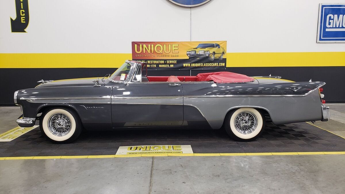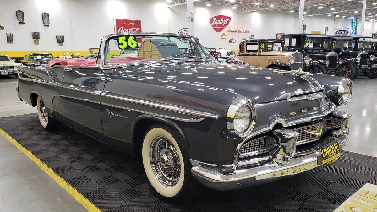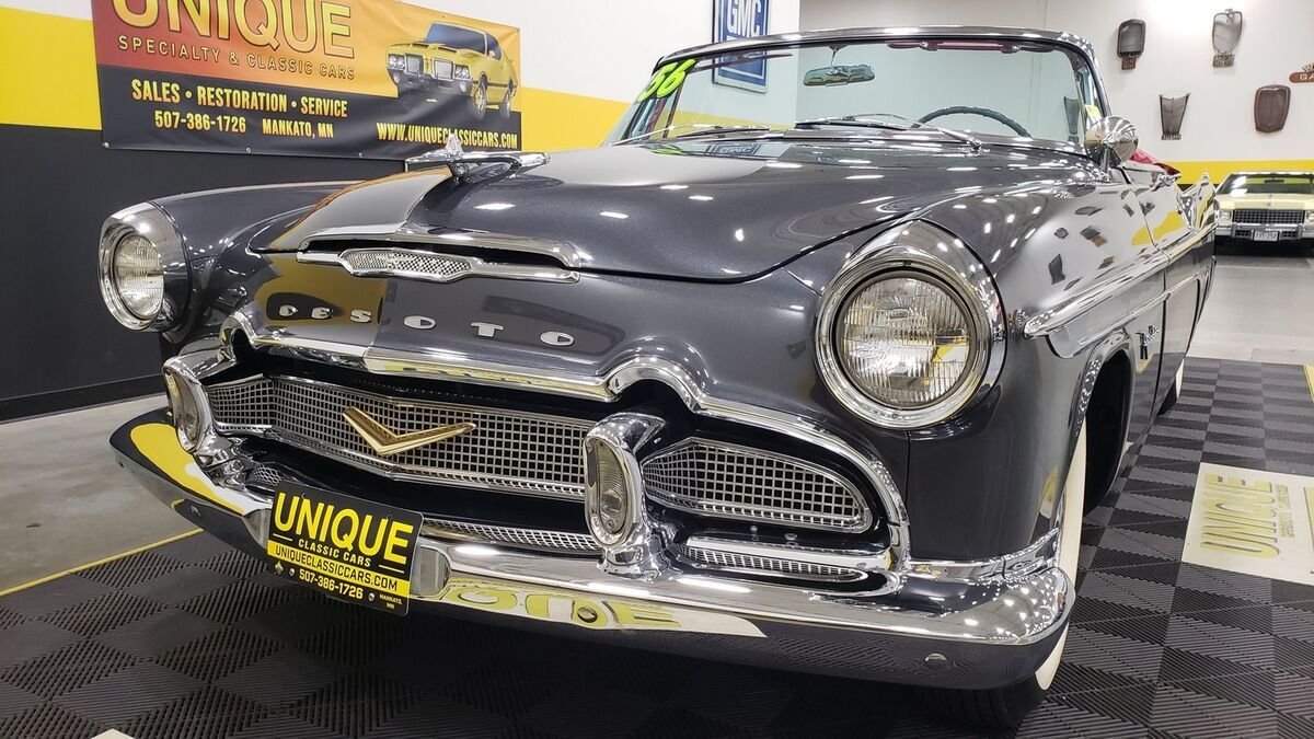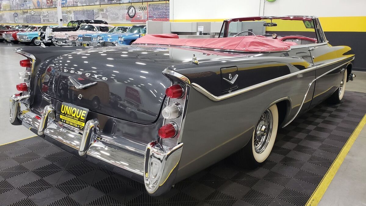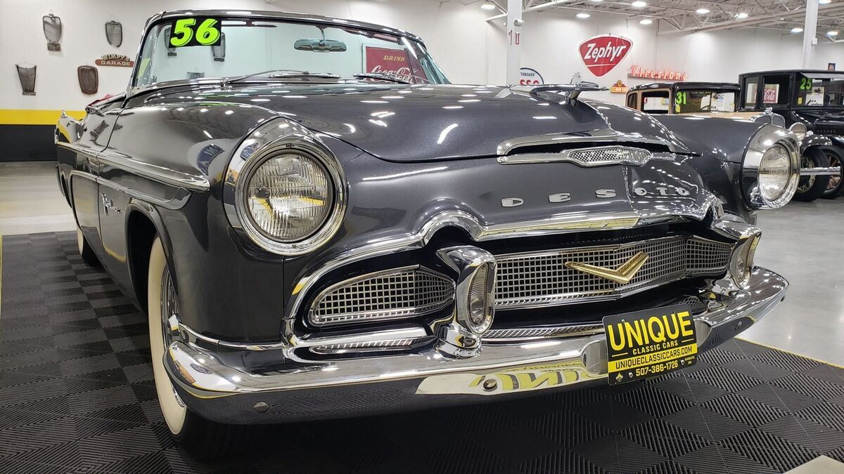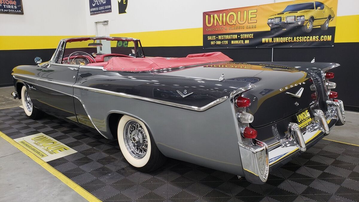 1 of only 646 total produced- with less than 100 still around today!1956 DeSoto Firedome Convertible finished in Rolls Royce Gray/Silver two tone paint. This one has a 330ci Hemi V8 under the hood paired with an automatic transmission. Push button transmission to the left of the steering column.This one has been fully restored and repainted. Equipped with power steering and power brakes! Red vinyl with clay cloth insert bench seat interior. Riding on spoked wheels with wide white wall tires. Manuals, trickle charger, and brochures will be included with purchase. Red vinyl parade boot also included. Paint shows extremely well and the brightwork shows just as nice! Power convertible top is black vinyl with plastic rear window, works as it should and fits well!