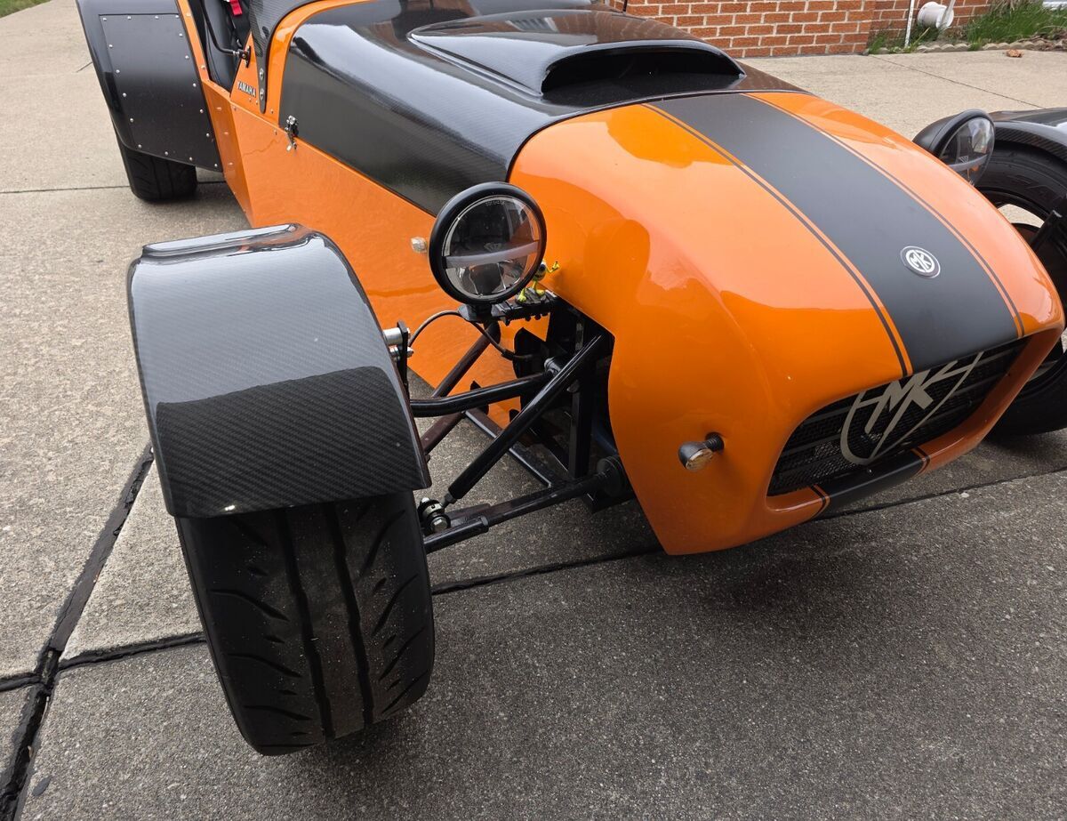 You are looking at a Lotus 7 replica made MK Sportscars in the UK. Car was built in 2011 and has a 175HP fuel injected Yamaha R1 in it for power,car has approx. 4k miles on it. The sequential transmission has been retained with a heavy duty clutch added. IRS differential with an LSD is also included. 4-wheel disc brakes and she stops on a dime. Quick ratio steering and 200tw tires are newer.Pushrod style inboard front suspension. No leaks,runs great,newer lithium battery,new seats with adjustable sliders,handles like it's on rails-most fun you can have in a car with your pants on. If you've never driven an 1100lb. car and clutchless shifted at 11K RPM's you owe it to yourself to experience it-pure,raw driving nirvana. I have had 7 of these style cars and this one has been the best-only reason for sale is I bought another car and no longer have the room to store her..