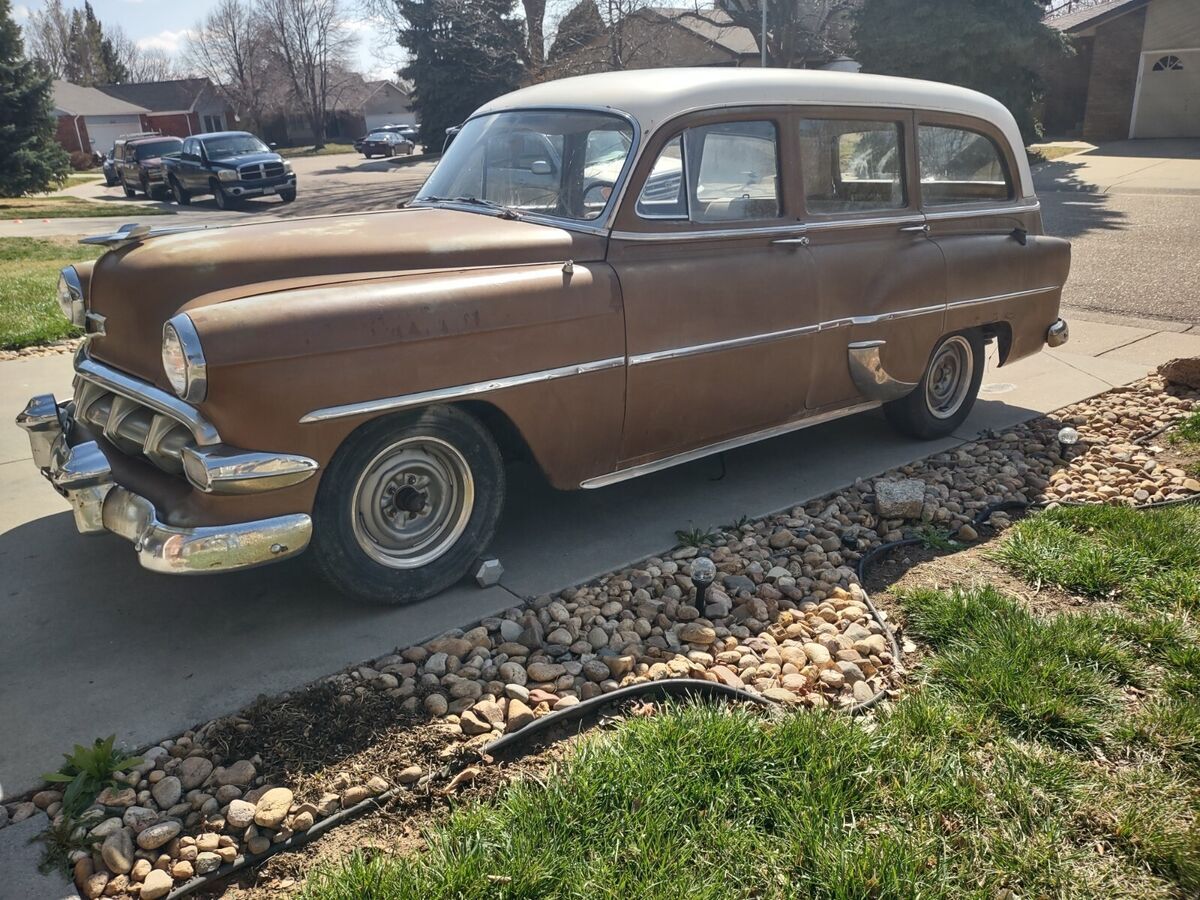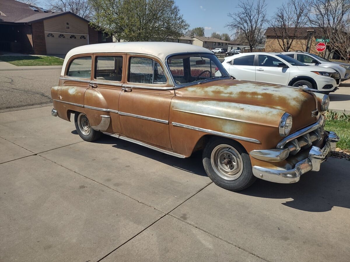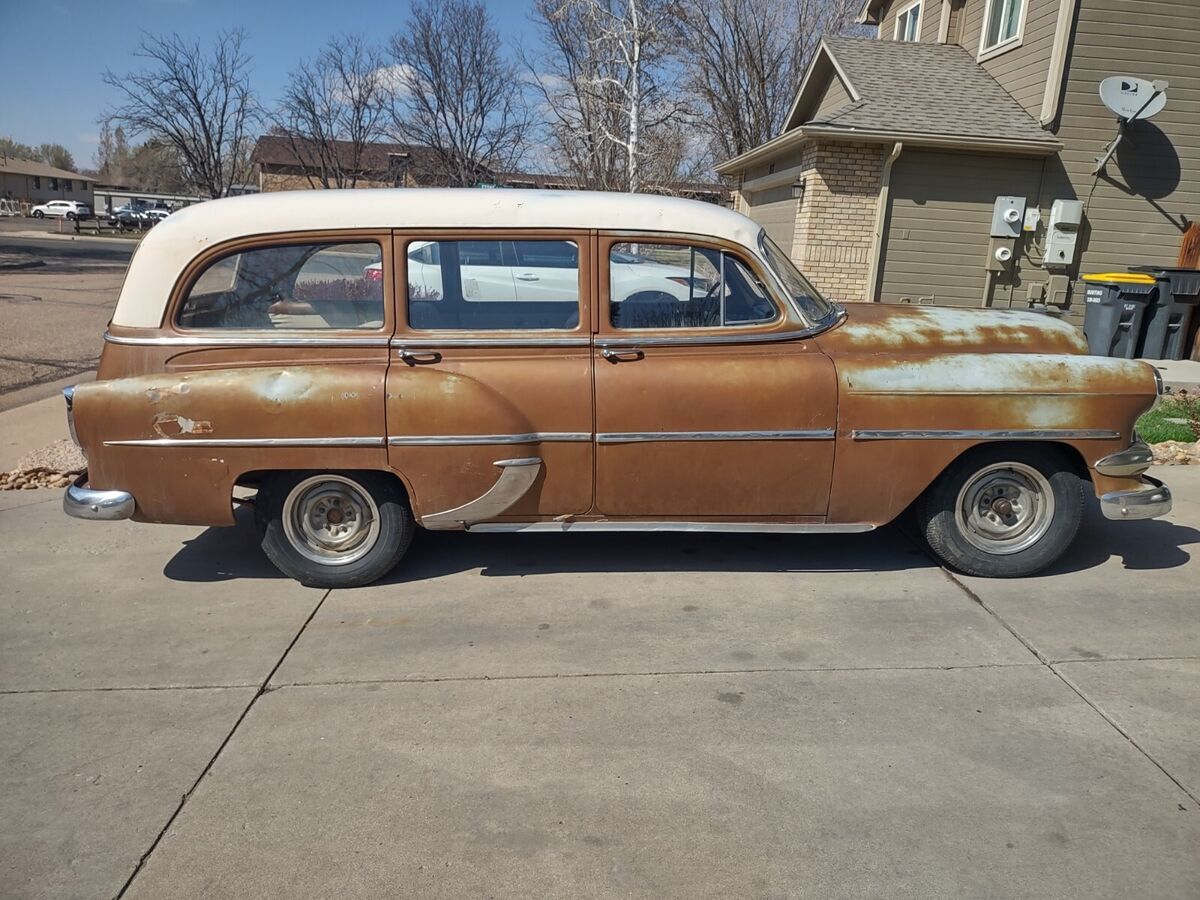 Here's a rare cool patina pretty much body rust free 4 door Chevy wagon with a clean Colorado title located in Windsor, Co. fun to drive but will need some cosmetic work. I do have a minimum acceptable offer other than my Buy it Now Price in this ad.It's a 3 speed on the column 235 inline 6 that shifts perfectly and no smoke. It is the cosmetic stuff that you will need to work on but all the parts are online everywhere for these cars from interiors to internals. This car is leave as is and work on the cosmetics or go 180 and do it the way you want. Here's what I know it will needHeadlights work but brake and taillights do not there were new frames and lenses were put in so there's a connection issueTurn signals not workingDoor panels all online finish them in your styleDoor handles all on line there are some for the front doorsHeadliner missing do your own style or get one onlineCrack in windshield all windows roll up and down and are goodFloor board in front have pin hole rust starting. See picsAll in all if your willing to put in the cosmetic work and not go crazy with it you have a very good starting point and a mechanically good vehicle.Buyer is responsible for shipping and full payment before pickup by Cashiers check preferred. Not through E bay check out. Can hold until your shipper is ready.