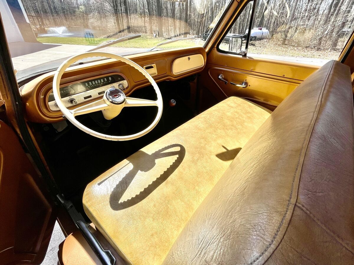 The interior is largely original and shows very well. The dash, gauges, and lenses all present nicely. The odometer is functioning, and the mileage is believed to be accurate. The original steering wheel is in great shape, and overall, the cab feels very complete and well cared for. It's a comfortable space with a great classic vibe.