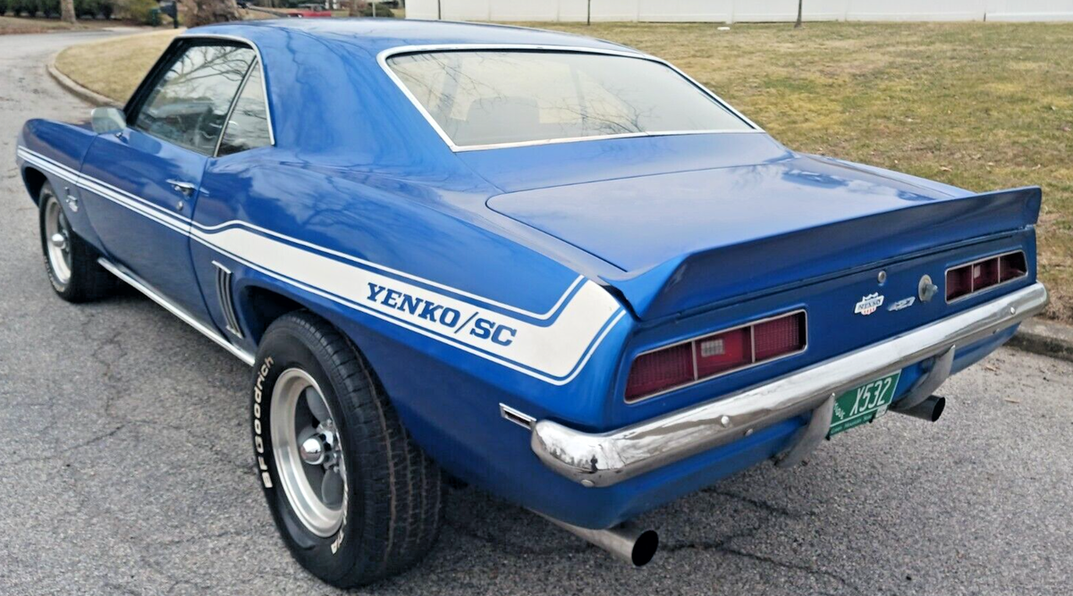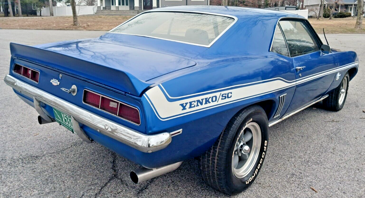 NICE 1969 CAMARO YENKO RECREATION WITH BIG BLOCK V8 POWER THAT RUNS AND DRIVES VERY WELL AND IS READY TO CRUISE!!!PleaseLEAVE A PHONE NUMBERwhen messaging/bidding so I can call you directly and dont have to chase you after auction ends.AUCTION MAY BE STOPPED AT ANY TIME DUE TO SERIOUS OFFER.Full Youtube walkaround, startup and driving video here:https://www.youtube.com/watch?v=2Gp_nK3vf00OPTIONS:Power SteeringManual Brakes454CI V8 (bored to 468ci)TH350 Automatic Transmission w/Shift KitStandard Bucket Seat Interior w/Factory ConsoleYenko StripesYenko EmblemsFront & Rear Spoilers15" American Racing Torque Thrust "D" Wheels w/BF Goodrich Radial T/A TiresDual Flowmaster Type Exhaust with 4" PipesFrame ConnectorsFord Heavy-Duty 9" Rear EndCar has been collector owned and garaged year round. Recently serviced with over $2500 worth of work including New gas tank, New flywheel, NEW starter, New Battery, NEW tune-up and some interior work. Starts right up and sounds greatBody and paint are fairly NICE. Nice and straight with decent quality paint. Minor blemishes like chips, scratches, touch-ups as you'd expect from being older but looks good and gets thumbs up anywhere including local car shows and cruise nights. I would call it a 10 footer. Some small dings on roof and a couple on trunk lid. NO rust to speak of on outer panels. Body gaps are pretty good, hood may need minor adjustment as it's aftermarket. Doors open and close good without sagging (left door needs to be slammed to sit flush). Inside lip of trunk lid has some rust at base of spoiler.Interior looks GREAT. NEW door panels, NEW armrests, NEW headliner, dash pad looks ok with cutout for aftermarket radio. Carpet in good shape, just older. Seats look good, couple small rips in them but hard to see. Overall good driver quality interior.Under the hood the bbc 468 V8 roars at the turn of the key and performs great. No noises, great compression and a great performer. Upgraded aluminum intake, Edelbrock 750cfm carburetor, HEI distributor, headers and dual Flowmaster exhaust. Quite a bit of internal upgrades as well like mild camshaft, rods, pistons, etc from what I was told by previous owner. Tranny shifts great with a pretty racy shift kit, and solid rear end.Underside is pretty clean with SOLID subframe and frame rails (rear end has been slightly narrowed and gas tank shortened to fit in factory location). Floors appear solid without any big holes from what I could see. Trunk solid as well, custom carpeting as shown. LOOK AT YOUTUBE VIDEO IN THE LINKPlease keep in mind that car is not perfect and will need a few minor things here and there. Rear tires are cracked and should be replaced soon but hold air and good for around town driving. Some things don't work (radio had amps and all kinds of connections in the trunk), horn, speedometer, may need a bulb or two replaced. Starter may need a shim and battery needs to be charged in full otherwise car is hard to crank. Nothing serious, just typical classic car things. Don't expect a brand new honda!Overall a NICE DRIVER QUALITY 69 Camaro Yenko 427 Tribute you can get in and drive. NOT perfect but very nice driver in my opinion (yours may vary).