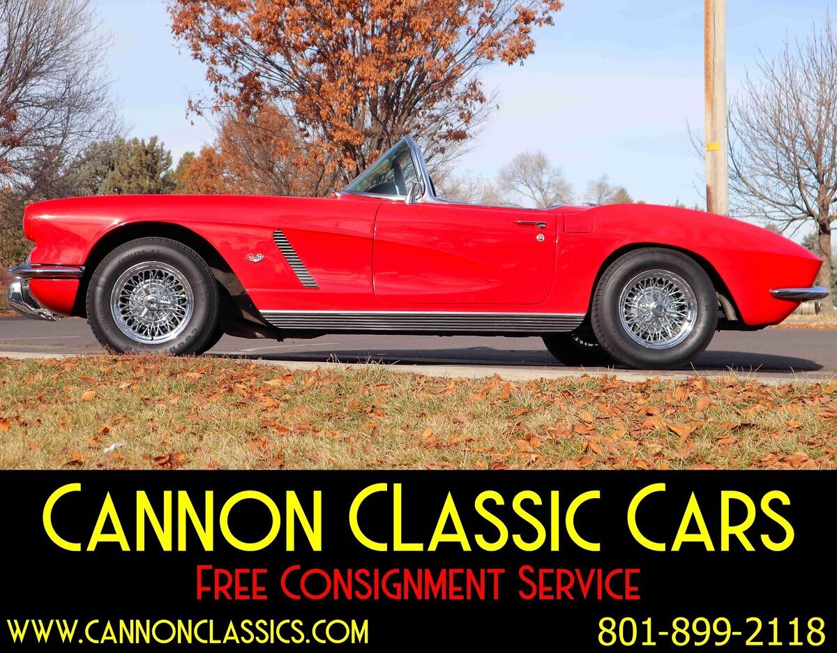 Vehicle Original VIN : 20867S1132841962 Chevrolet Corvette C11. 327 V82. 4-speed manual transmission3. Soft Top4. Previously Restored5. Mostly Original InteriorDo you have a great consignment like this one? Let us sell it for you! We offer a zero-cost consignment service. Financing is available, so please call us for more information at 801-899-2118. We are a licensed and bonded dealership in the state of Utah, with Utah Dealer License #148B.This vehicle is available for viewing in our showroom at Cannon Classic Cars, located at 809 W 1700 S, Salt Lake City, Utah 84104. We would love to talk to you about this classic! You are always welcome and encouraged to visit the vehicle in person. You can also text us at 801-999-0513 with any questions.Please note that this vehicle is sold as-is, with no warranty expressed or implied, and is mileage exempt. The buyer is responsible for shipping arrangements and costs. Deposits are non-refundable.