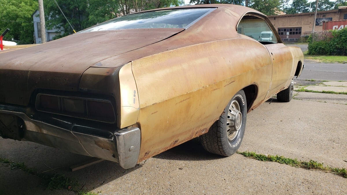 Up for sale is a super clean 1967 impala SS still wearing it's original gold paint.This gold on gold ss fastback has super solid floors and trunk. A totally restored frame and a running numbers matching 327 motor with a automatic transmission.The previous owner was going to LS it and restore the interior but his health took a turn for the worst. This unmolested car is ready for its next stage in life...leave the body as is put a nice tune up in it or a monster heartbeat....Every part is bagged and tagged and there are 100s of bags we spread it all out looks to be all there down to little bags of interior screws.Personal inspection is not only welcomed but encouraged before bidding thank you.Car is for sale locally and will be removed if sold.Payment will only be accepted as wire transfer bank check clearing before pick up or CASH upon being picked up.We can assist in any we can to help the transport company of your choice.The car will stay indoors till picked up. There is no deadline as long as Payment has been made.Thanks for looking please contact us at 315-507-7900 with any questions..