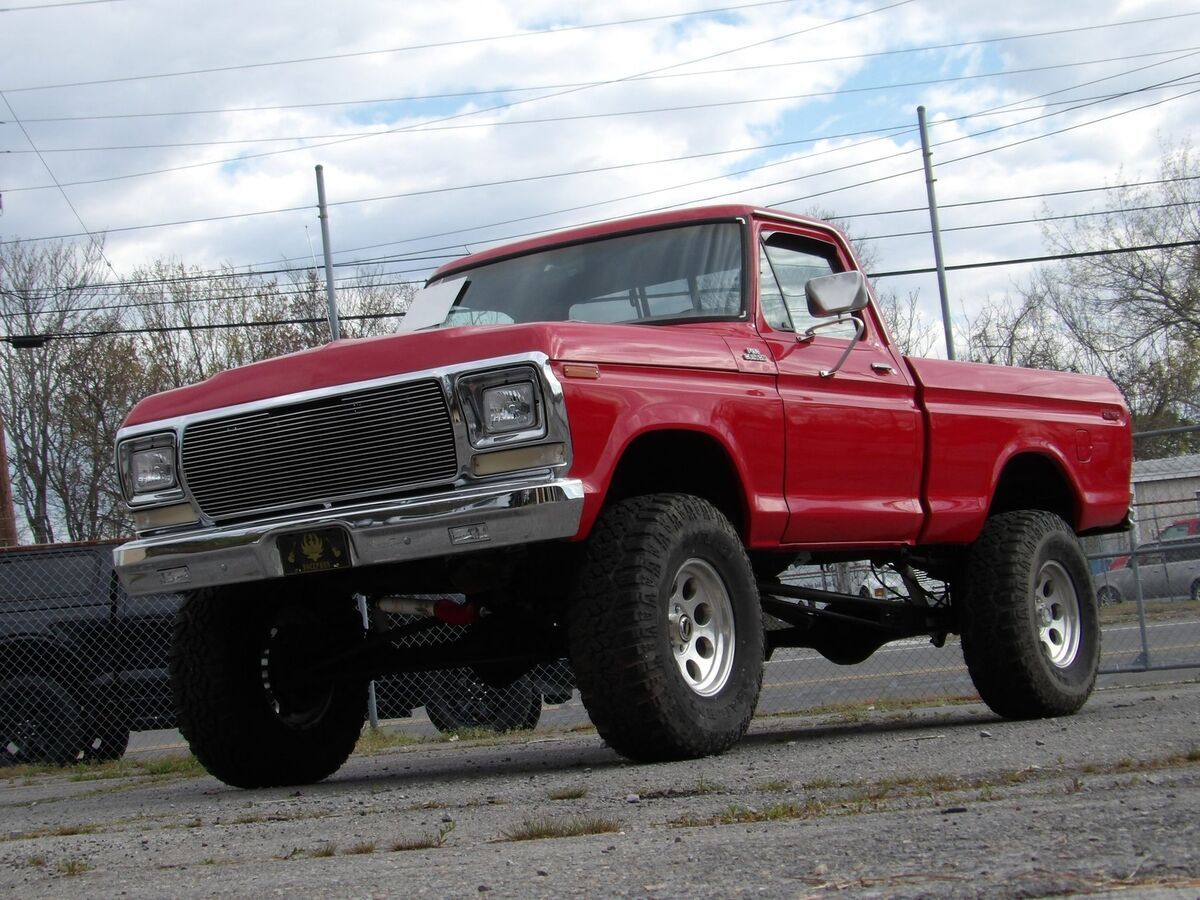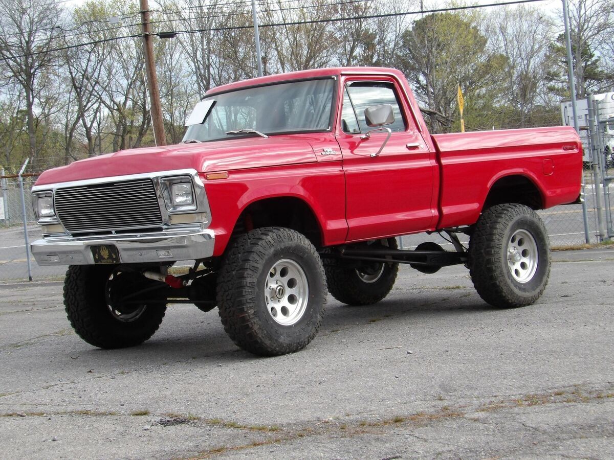 The interior sees the door jambs, insides of the doors and dash all painted the same bright red as the exterior with black door panels, headliner, visors, dash pad, and bench seat. The interior needs nothing but a new driver behind the factory Ford steering wheel. A JVC AM/FM/CD player has been installed along with a shifter knob that will have your passengers laughing. The sliding rear glass window and vent windows provide plenty of breeze in this sweet classic 4x4.