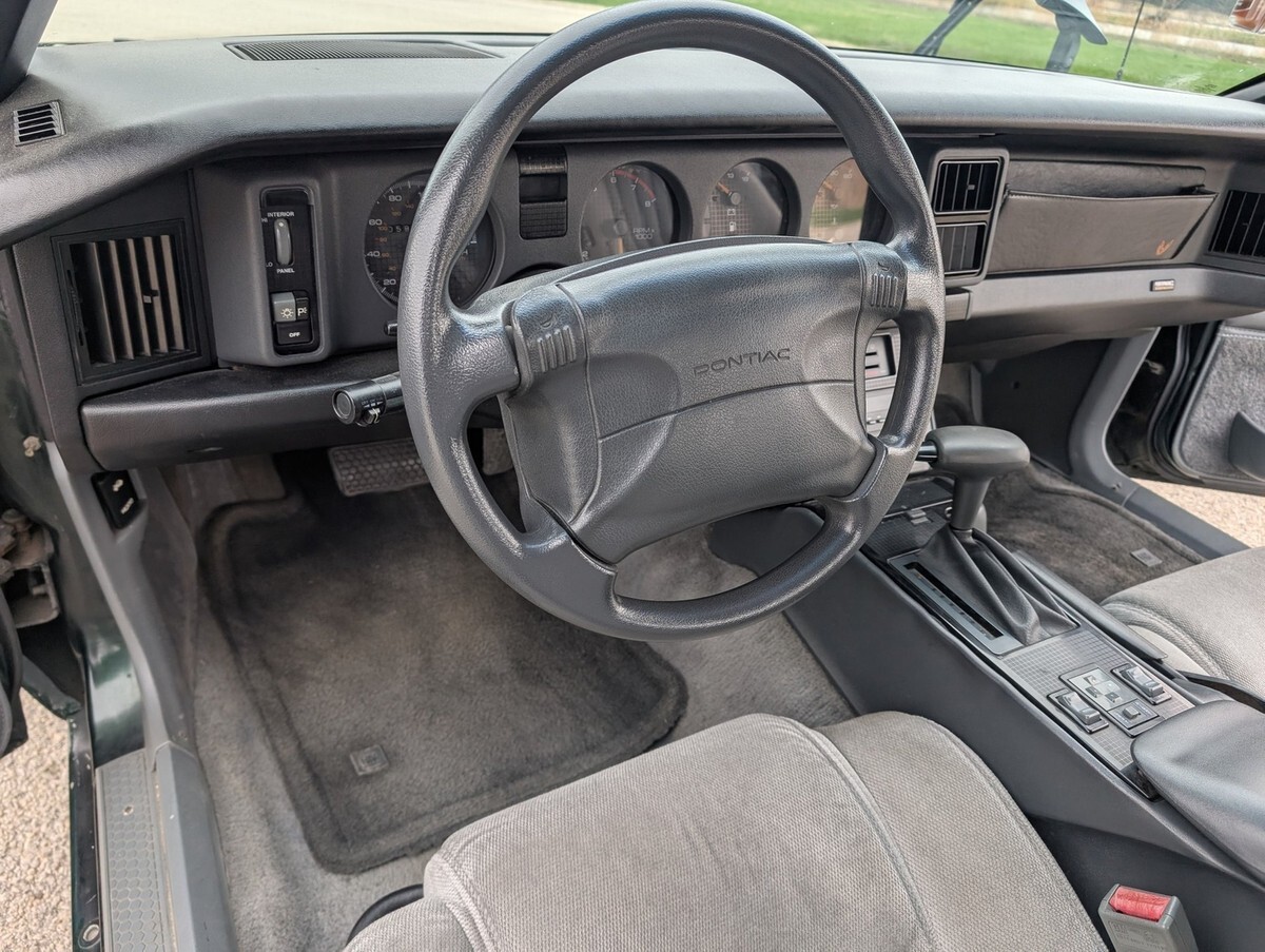 This Formula 350 is notable in that is is one of only 1,282 made for the '91 model year. It was optioned with the beautiful Polo Green paint, and has been repainted one time in the original color. While Polo Green is usually paired with the tan cloth interior, this Firebird was manufactured with the far less common gray cloth interior. Additionally, it was manufactured with the coveted WS6 suspension package, meaning this Firebird can take corners as good as it looks!