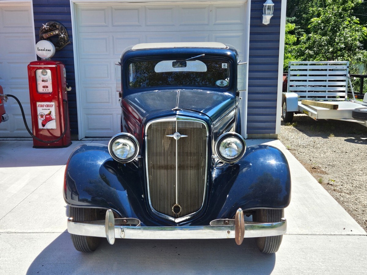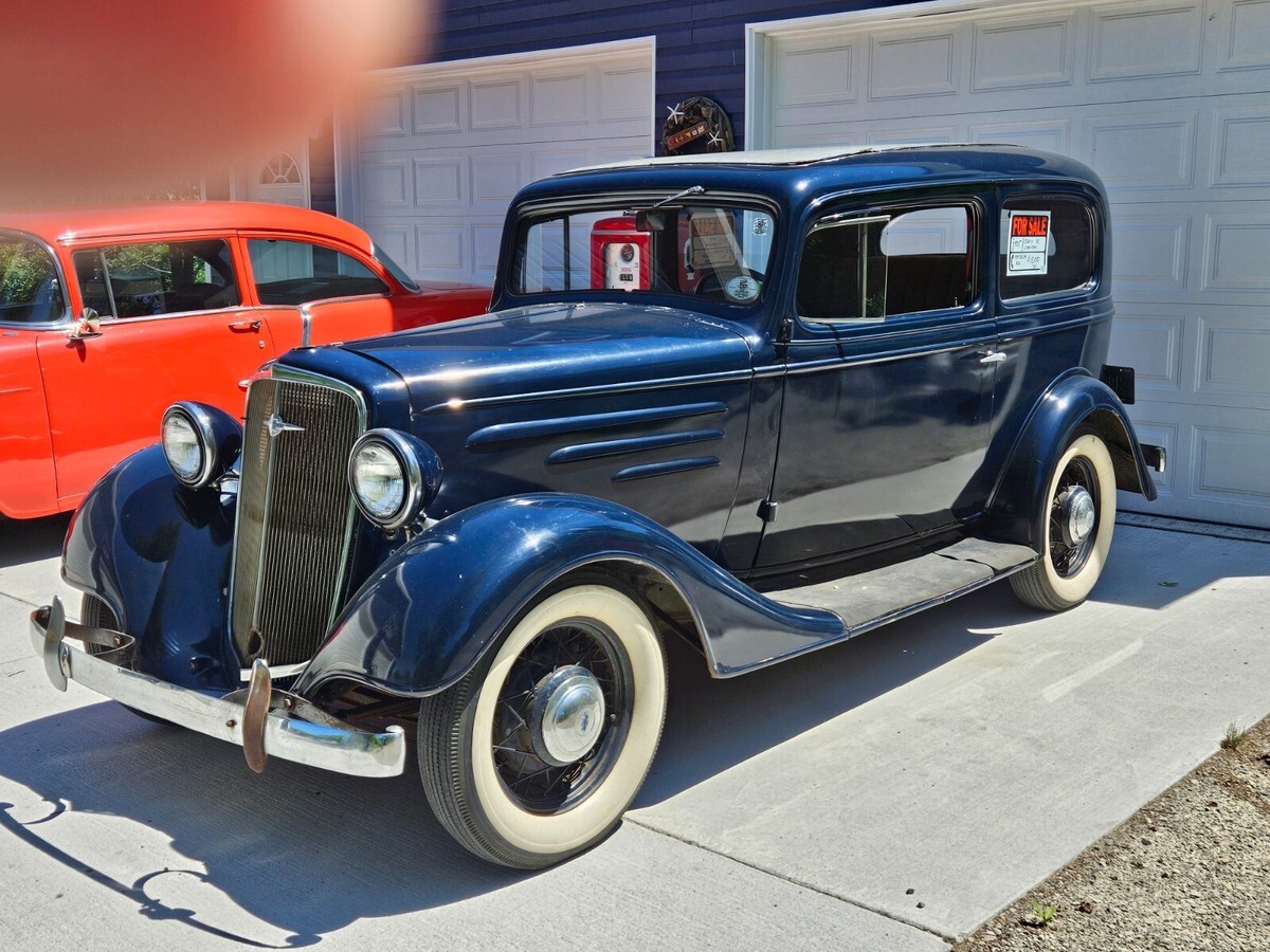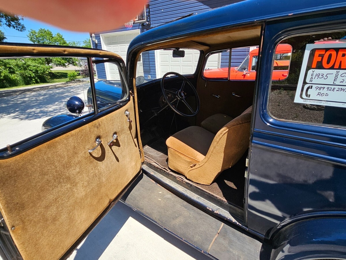 1935 Chevrolet Standard 2 Door Sedan35 Chevy 2 Door Sedan EC Model. All original except the Aluminum radiator. Original radiator and cap come with car. Very solid car. Starts good, runs good, shifts good, drives good and stops good. Motor rebuilt in the early 50s, paint and interior redone at the same time. Stored over 50 years in a dry Indiana barn. Only rust hole is in drivers running board. Asking $14,000 or best offer. Cash or wire transfer only. Sold as is where is. No warranties or guarantees implied or expressed. Mileage is not correct. Rod Caseville Mi.