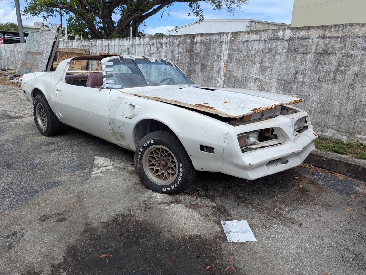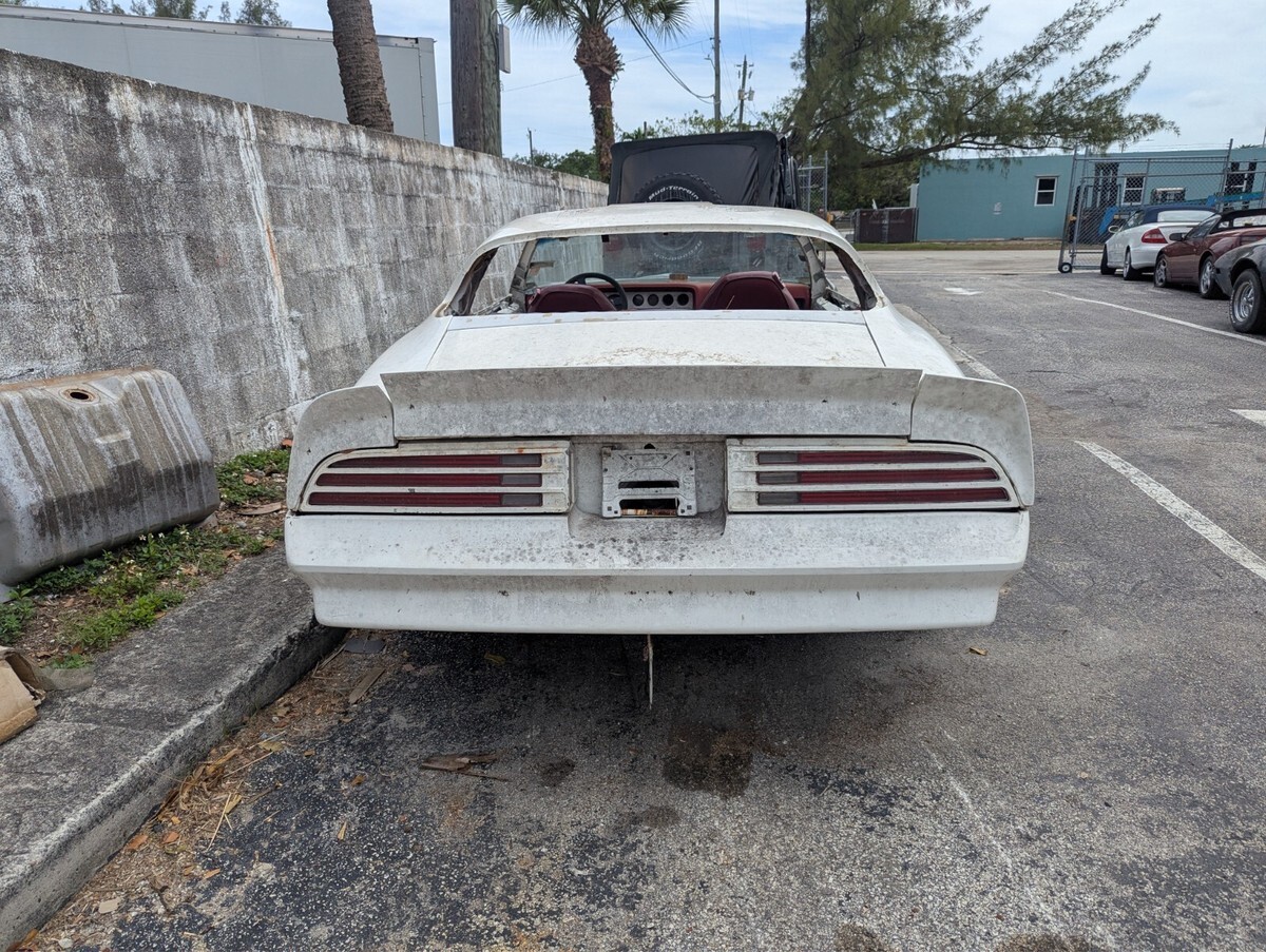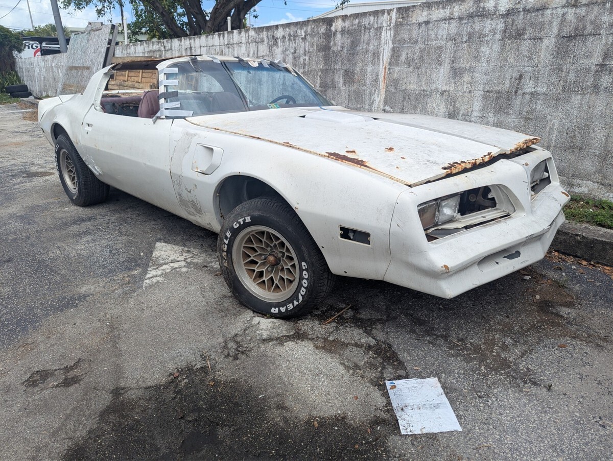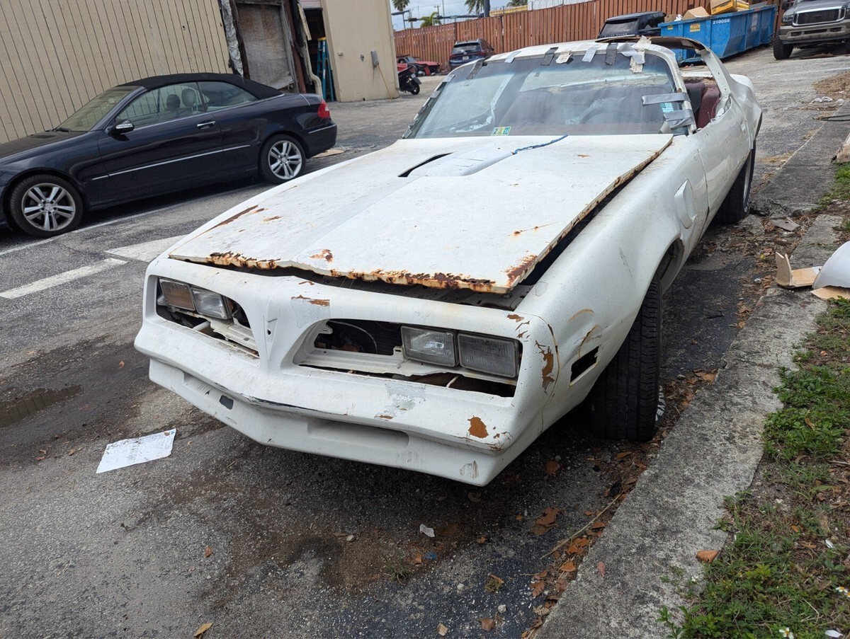 Selling my 1978 Pontiac Trans AM formula 400 project. Has clean title. Engine spins free. Been sitting some time now. Rust can be seen in the pix. Frame is good. Floors good. Missing back window but maybe I have extra. No guarantee on the rear window. I have 4 or 5 of these cars so I'm doing my best to give description. Engine is believed to be original to the car, 400 V8 with auto trans. Located in Fort Lauderdale FL. I can arrange cheap transport for buyer. Feel free to call with questions. Priced and listed for local sale as well so won't last. Selling my project. Call with questions 347.403.3399This one is a 1978 TRANS AM 400 V8 with automatic trans. VIN: 2W87Z8N124852.
